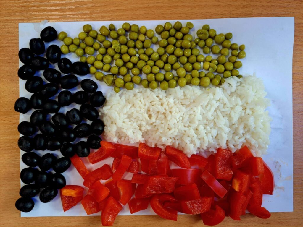 Przeprowadzony w ramach zajęć geografii w klasach ósmych projekt „Jadalna flaga”, uświadomił uczniom, że można poszerzać wiedzę w różny sposób. Młodzież przekonała się, że z jedzenia można zrobić wszystko, nawet flagę. Zadanie było proste i polegało na wykonaniu jadalnej flagi dowolnego państwa Azji ze zdrowych artykułów. Pod nóż poszły różne warzywa i owoce, produkty surowe i gotowane. Projekt sprawił uczniom wiele radości, zabawy a także rozbudził ich kreatywność.