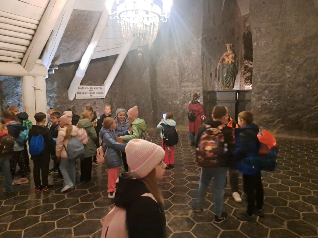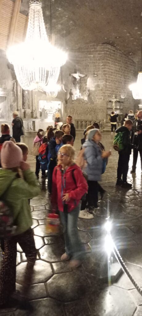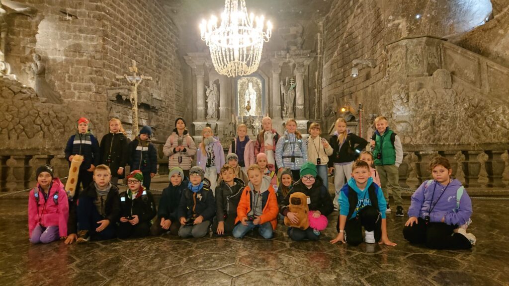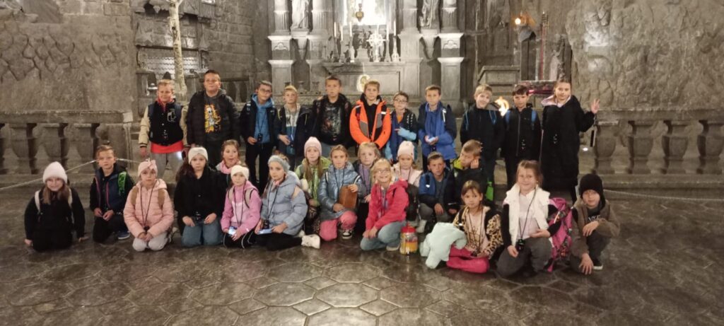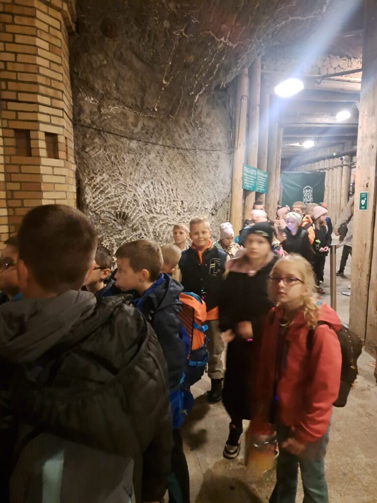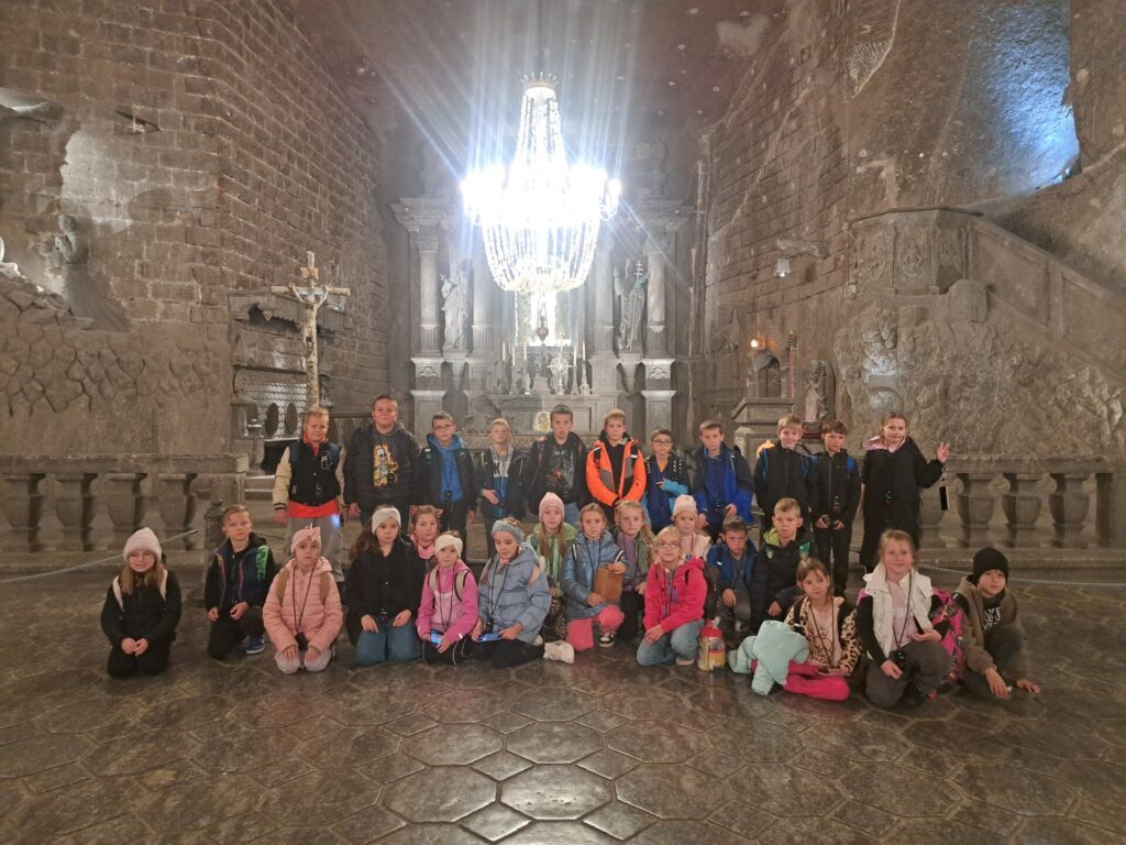 We wtorek, 7 października uczniowie klas trzecich udali sie na wycieczkę do Kopalni Soli w Wieliczce. Podziwiali solankowe jeziora i przepiękne podziemne komory, w tym niepowtarzalną Kaplicę św. Kingi. Z zainteresowaniem poznawali dawne narzędzia i maszyny górnicze oraz stosowane w przeszłości metody wydobycia i transportu soli. Była to bardzo wartościowa i udana wycieczka.