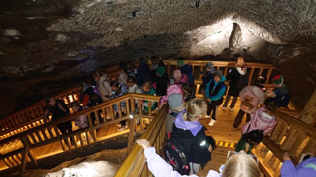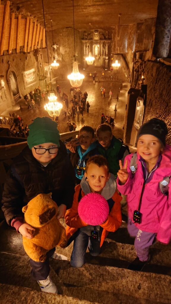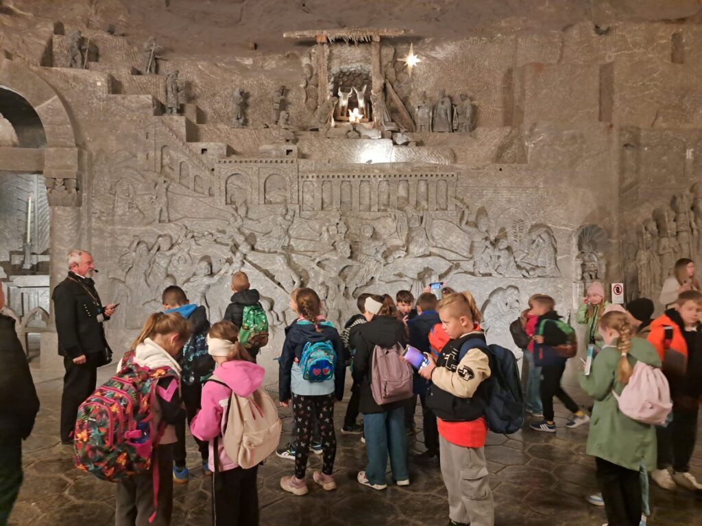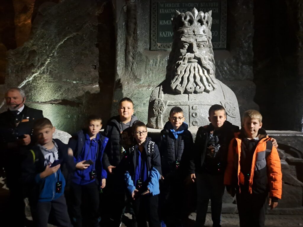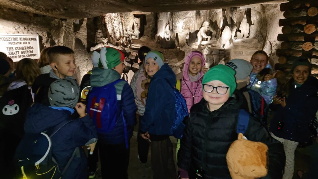 We wtorek, 7 października uczniowie klas trzecich udali sie na wycieczkę do Kopalni Soli w Wieliczce. Podziwiali solankowe jeziora i przepiękne podziemne komory, w tym niepowtarzalną Kaplicę św. Kingi. Z zainteresowaniem poznawali dawne narzędzia i maszyny górnicze oraz stosowane w przeszłości metody wydobycia i transportu soli. Była to bardzo wartościowa i udana wycieczka.