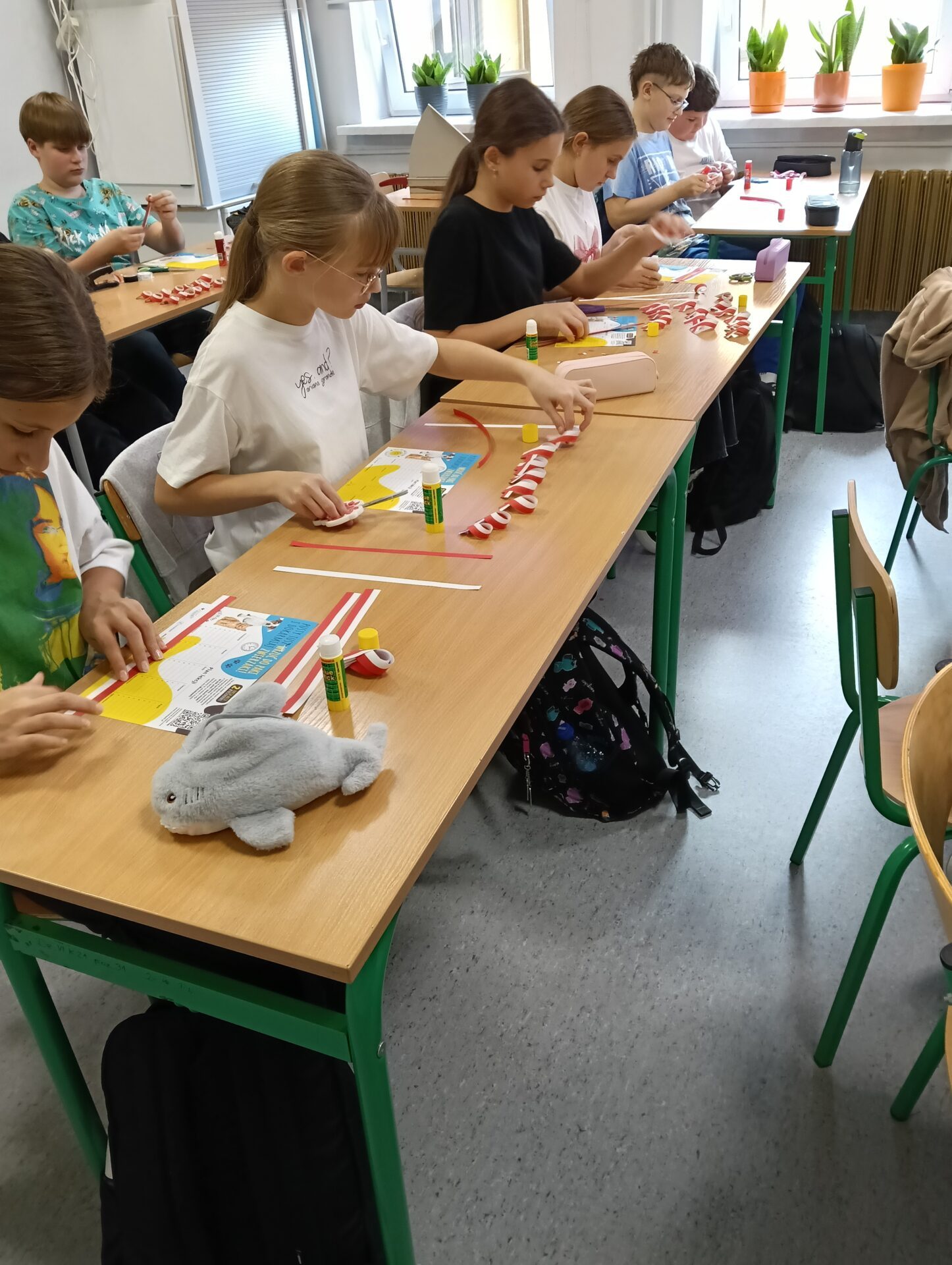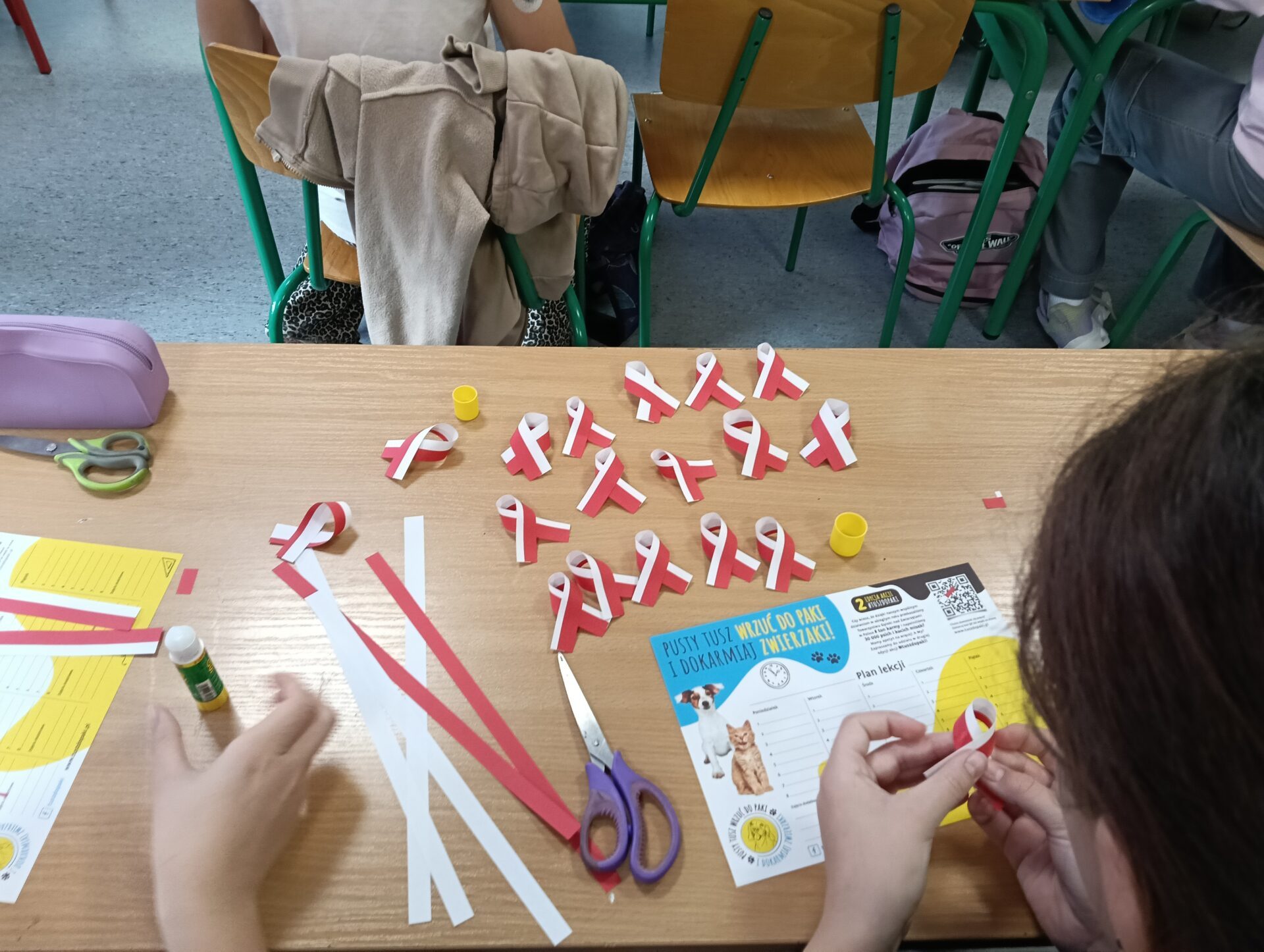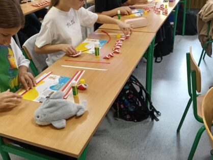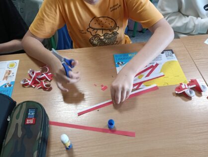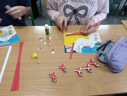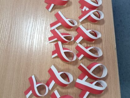 „SZKOŁA PAMIĘTA” Uczniowie z klas szóstych na lekcjach techniki przygotowali kotyliony narodowe dla wszystkich uczniów z klas 4-8. Wielu uczniów z wychowawcami udało się również pod pomnik ku czci poległych w czasie I i II wojny światowej. Beata Nowak