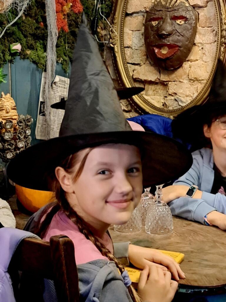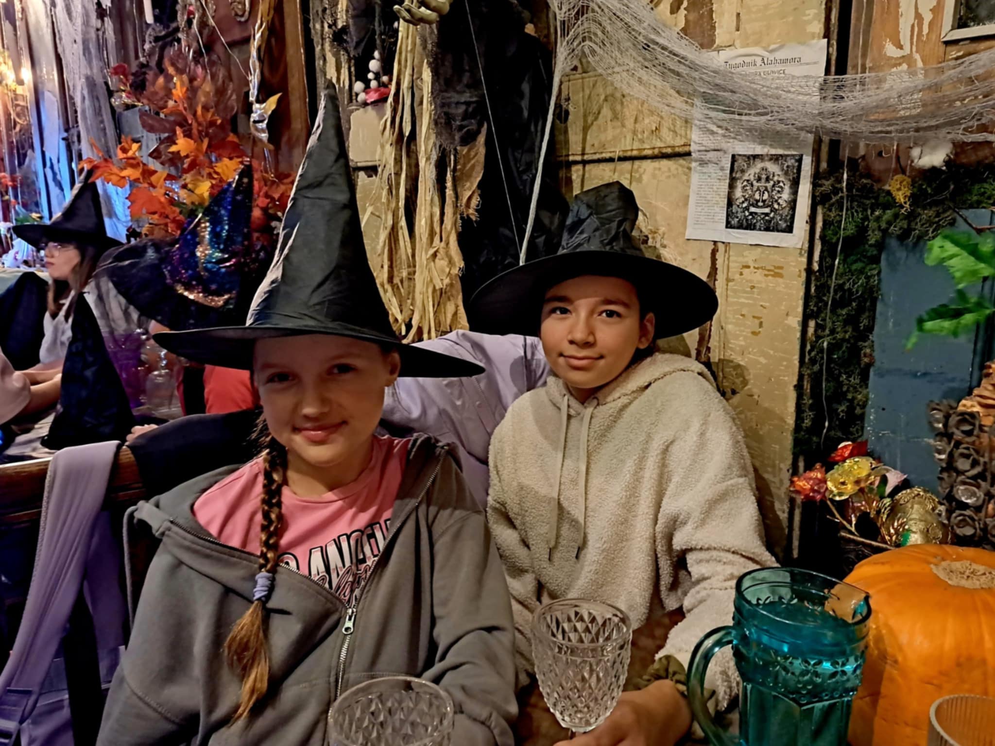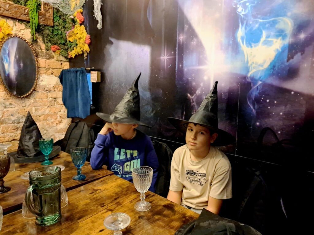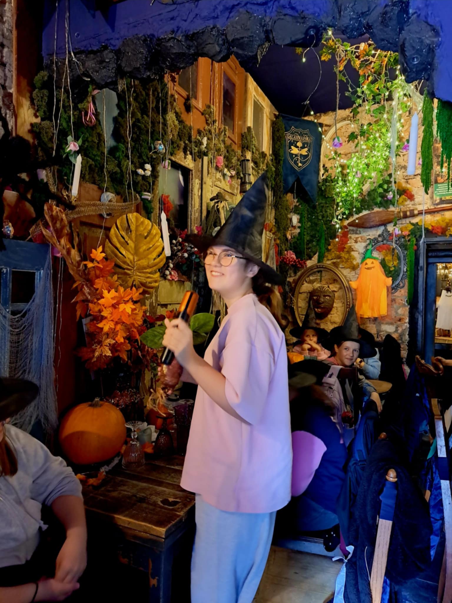 W czwartek 30.10.2025 uczniowie klasy Va i Vb wybrali się do magicznej kawiarni „Alahamora” Magiczna kawiarnia w Katowicach, gdzie czekały na nich niezwykłe warsztaty czarodziejskie. Dzieci przeniosły się w świat magii i tajemnic -tworzyły własne eliksiry, poznawały sekrety czarodziejskich zaklęć i brały udział w zagadkach i quizach o świecie magii. W kawiarni panowała wyjątkowa, halloweenowa atmosfera – migotały świece, wszędzie unosiły się pajęczyny i dynie z uśmiechami. Uczniowie mogli również spróbować magicznych przysmaków i napojów. To był dzień pełen uśmiechów, czarów i dobrej zabawy!
