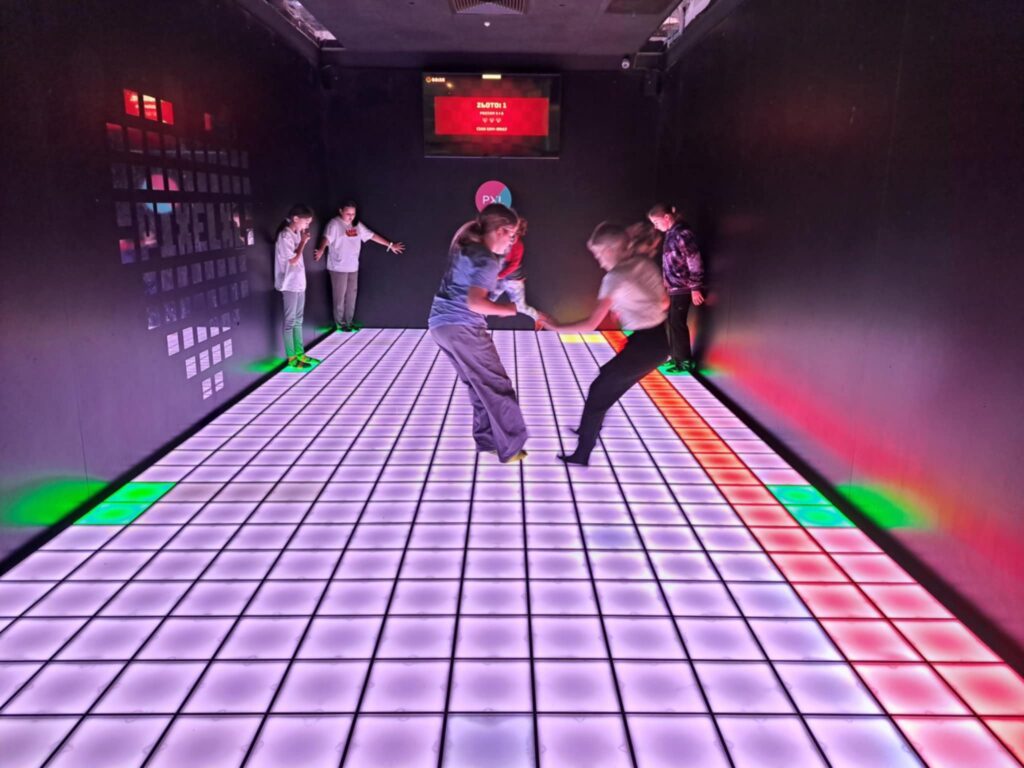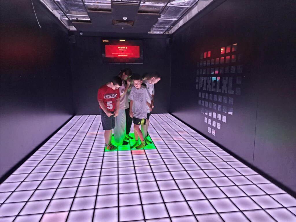 Uczniowie również odwiedzili “ PIXELXL” w Katowicach, gdzie czekała na nich świetna zabawa na interaktywnych matach do gry. Uczniowie mogli spróbować swoich sił w różnych grach ruchowych, które łączyły zabawę, rywalizację i aktywność fizyczną. Wspólne rozgrywki dostarczyły mnóstwo śmiechu i emocji, a każdy mógł wykazać się zręcznością, szybkością i współpracą. To była wspaniała, pełna energii przygoda, którą wszyscy zapamiętają na długo!