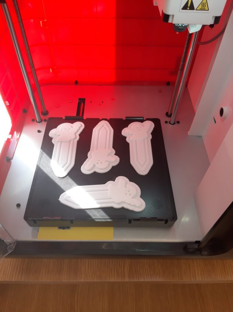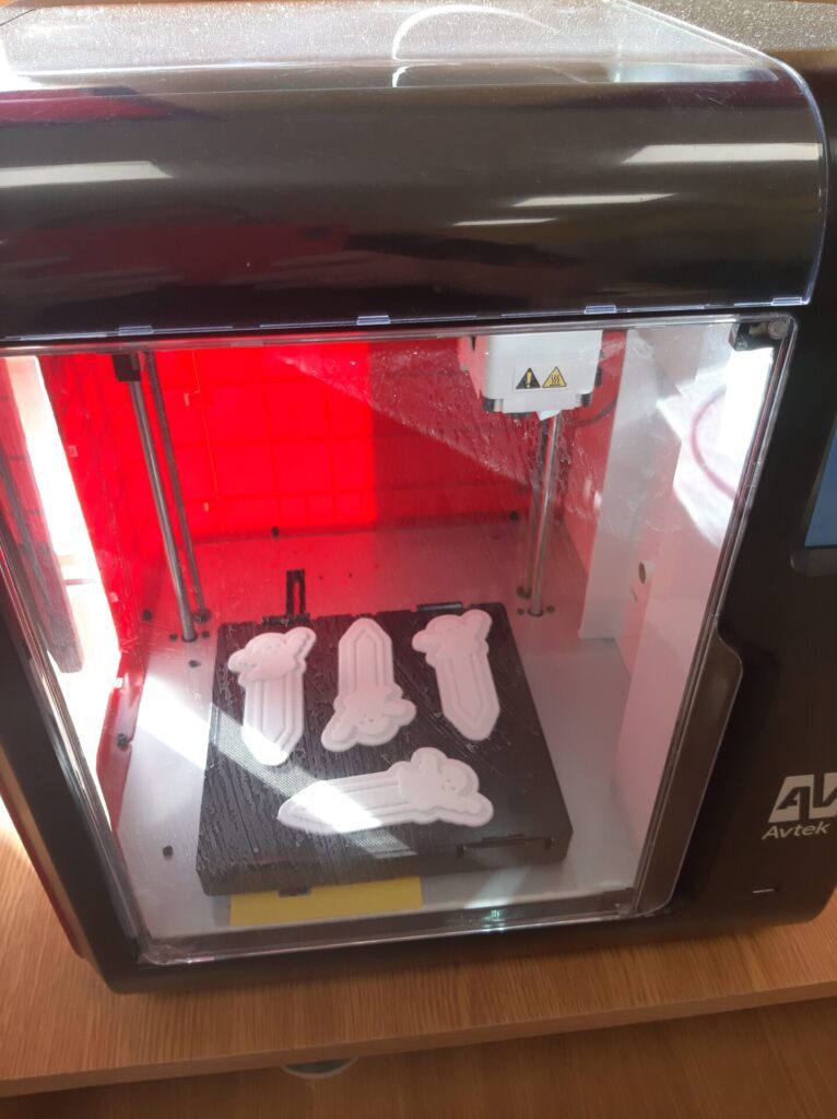 Po wykonaniu projektów uczniowie uczyli się przygotowania plików do druku oraz ustawiania podstawowych parametrów drukowania. Gotowe modele zostały wydrukowane na drukarce 3D działającej w pracowni szkolnej.
