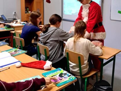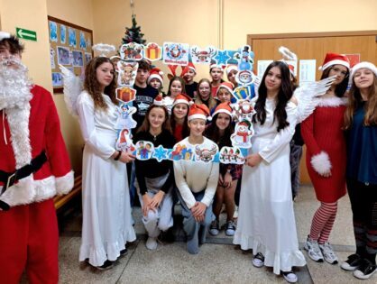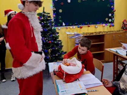 Święty Mikołaj – postać starszego mężczyzny z białą brodą ubranego w czerwony strój, który wedle różnych legend i baśni w okresie świąt Bożego Narodzenia rozwozi dzieciom prezenty saniami ciągniętymi przez zaprzęg reniferów. Według różnych wersji zamieszkuje wraz z grupą elfów Laponię. Mimo, że do Polanki Wielkiej miał długą drogę do przejechania udało mu się przybyć na czas i spotkać się ze wszystkimi grzecznymi dziećmi 😊