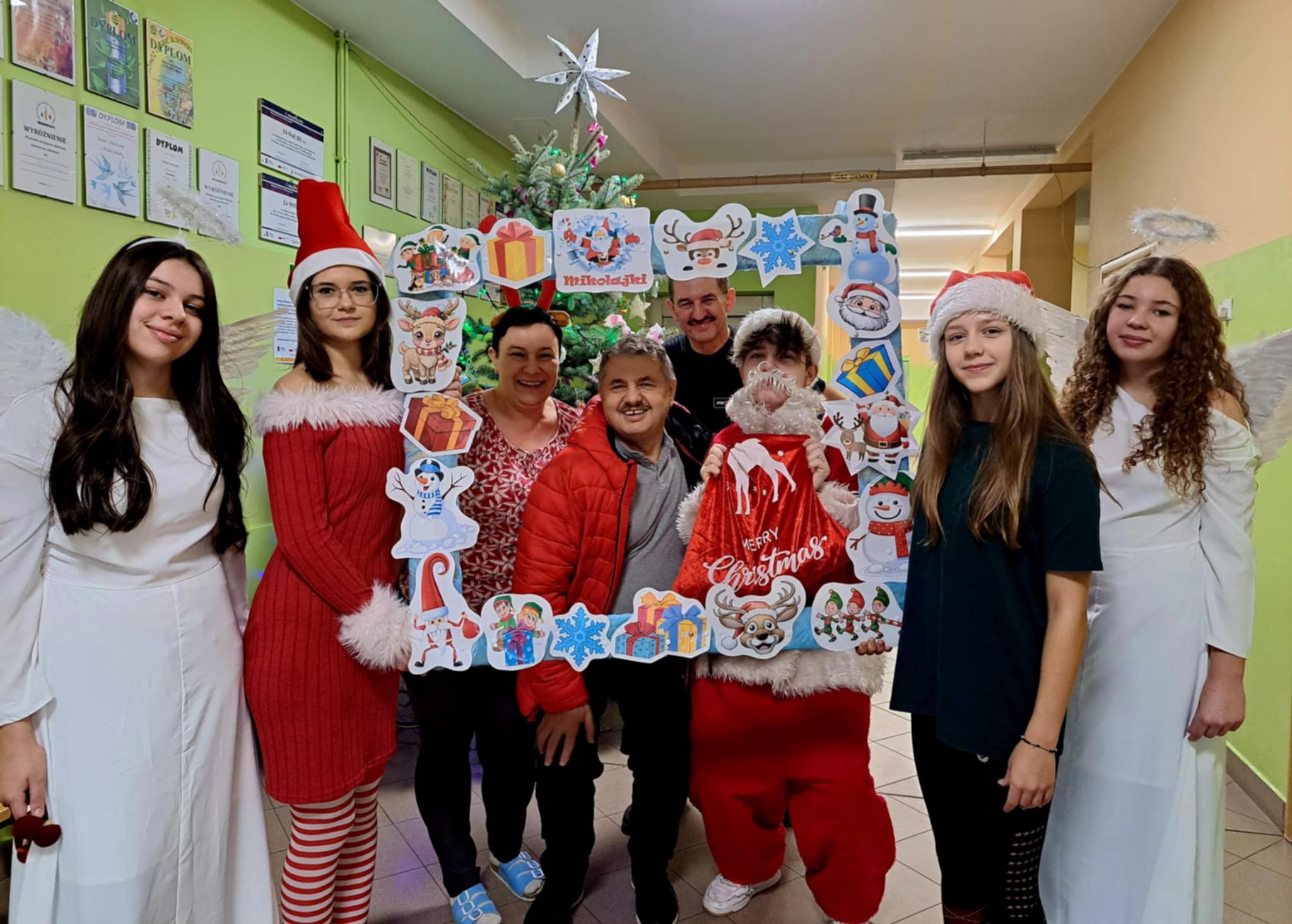 Święty Mikołaj – postać starszego mężczyzny z białą brodą ubranego w czerwony strój, który wedle różnych legend i baśni w okresie świąt Bożego Narodzenia rozwozi dzieciom prezenty saniami ciągniętymi przez zaprzęg reniferów. Według różnych wersji zamieszkuje wraz z grupą elfów Laponię. Mimo, że do Polanki Wielkiej miał długą drogę do przejechania udało mu się przybyć na czas i spotkać się ze wszystkimi grzecznymi dziećmi 😊