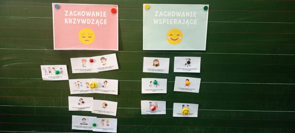W obydwóch klasach odbyły się już pierwsze zajęcia, których docelowo będzie 9. Temat zajęć pt.” Zgrana klasa – razem lepiej! miał na celu kształtowanie postaw sprzyjających budowaniu bezpiecznych relacji rówieśniczych oraz przeciwdziałania zachowaniom przemocowym poprzez działania zespołowe i empatyczne.