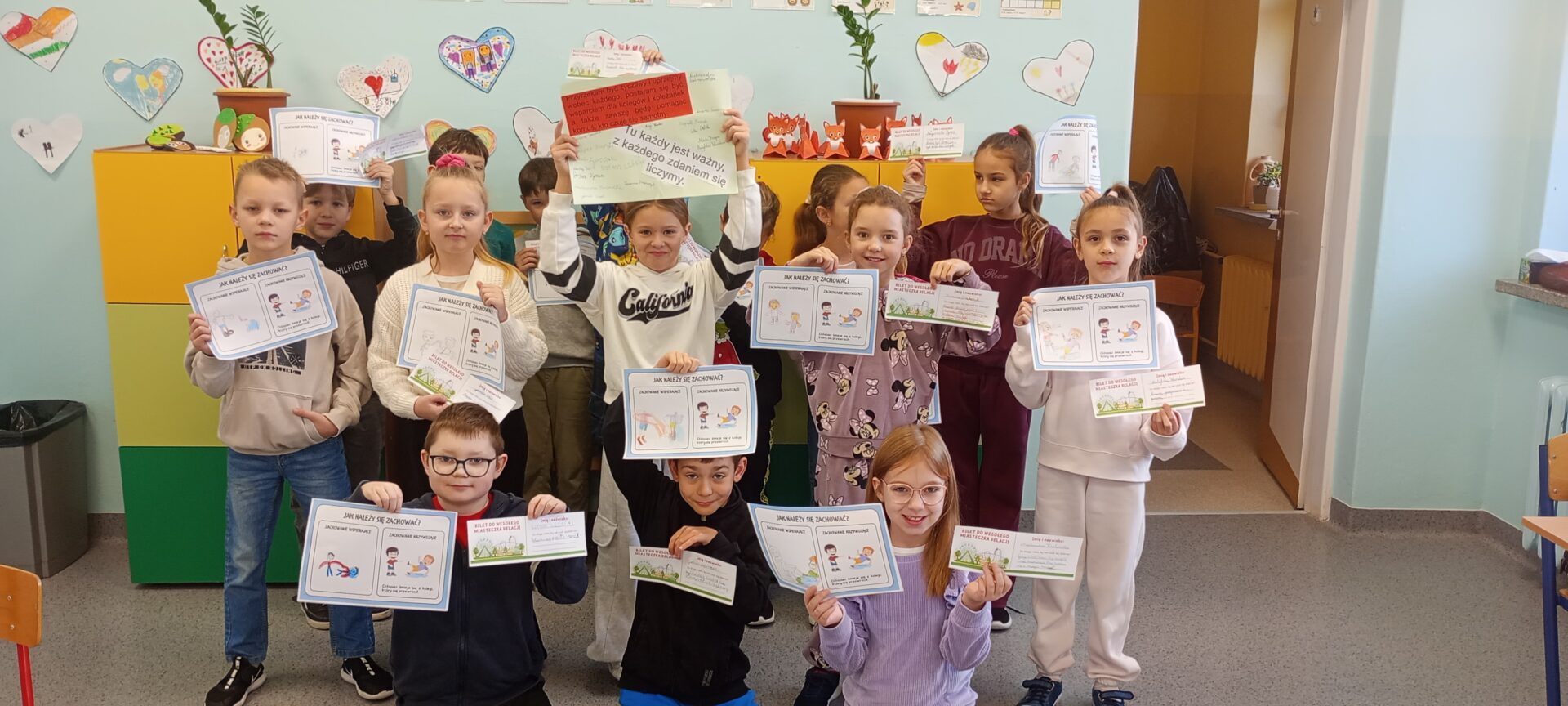 Uczniowie klasy II b pod opieką Barbary Jarosz oraz uczniowie klasy I a pod opieką Pani Sabiny Pikuły biorą udział w projekcie – innowacji pedagogicznej „MOC RELACJI – SIŁA BEZ PRZEMOCY”. Projekt łączy elementy edukacji emocjonalno-społecznej, profilaktyki przemocy rówieśniczej oraz działań wzmacniających zdrowie psychiczne uczniów. Zawiera twórcze metody dydaktyczne, aktywności sensoryczne, działania oparte na metaforze i symbolice, a także angażujące formy ekspresji uczniowskiej.
