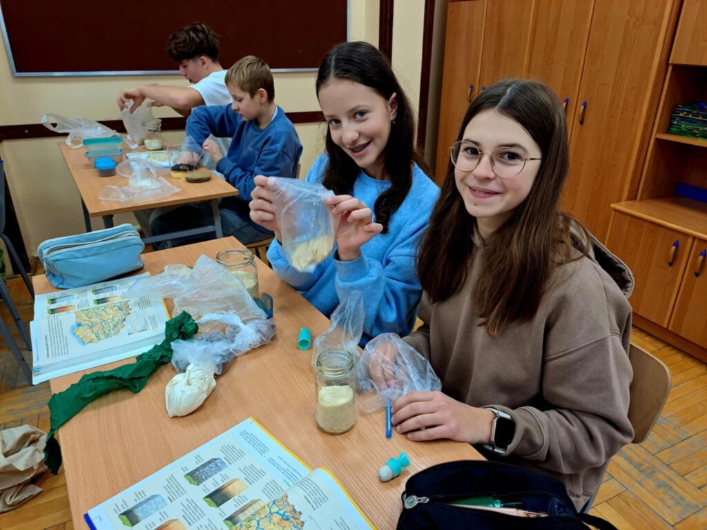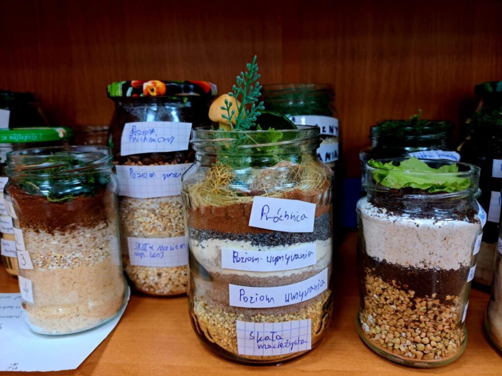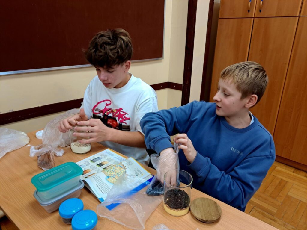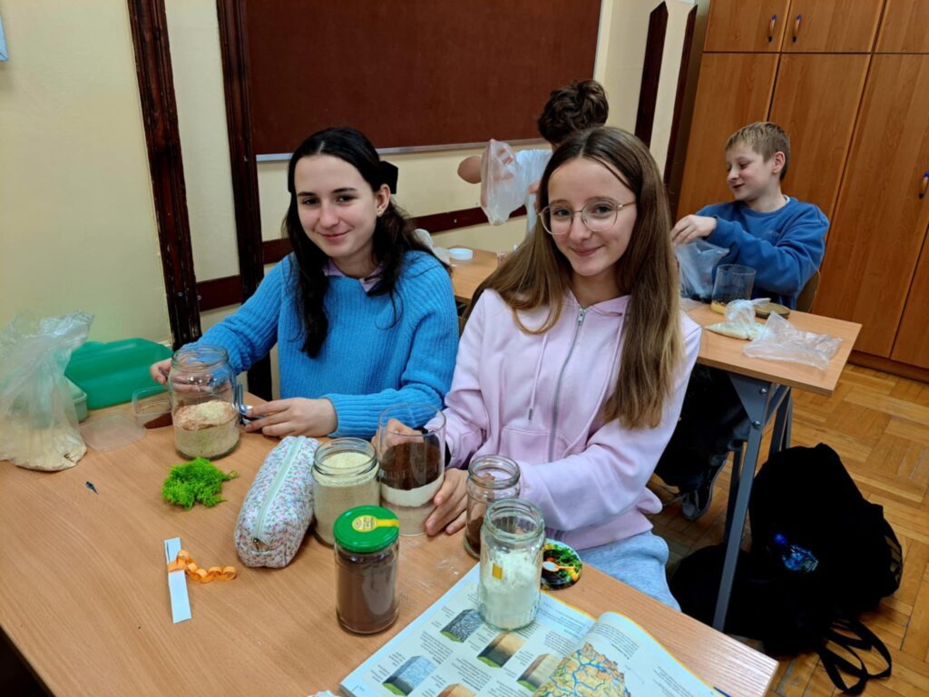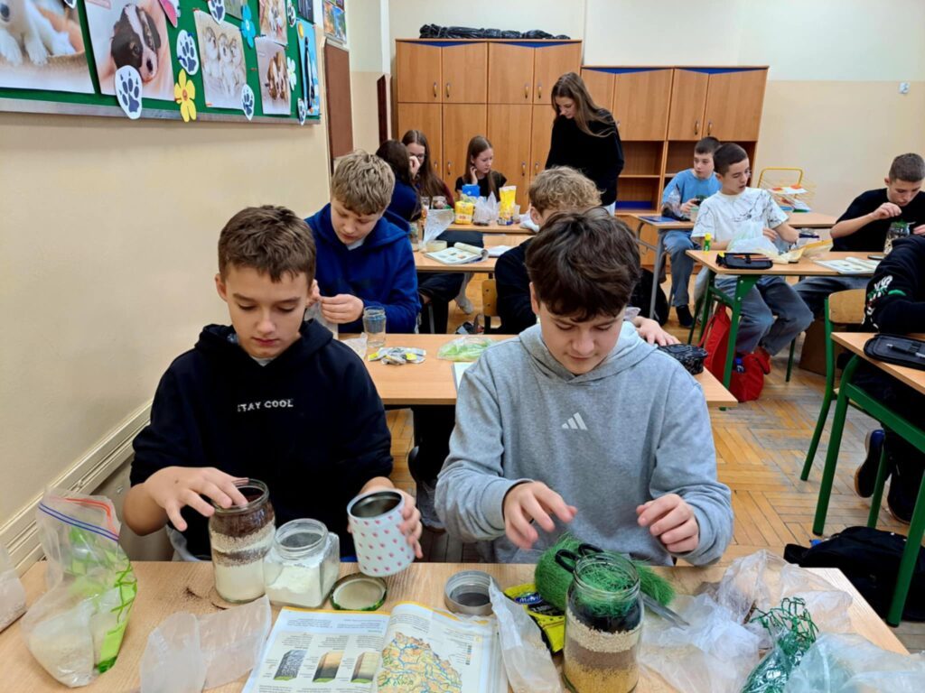 W ramach omawianego na lekcji geografii tematu gleb w Polsce, uczniowie wykonali profile glebowe, czyli jej pionowe przekroje. Do ich tworzenia użyli różnych produktów jakie mogli znaleźć w kuchni lub ogrodzie. Efekty pracy można podziwiać na dołączonych zdjęciach. Wszystkim uczniom gratuluję kreatywności i pomysłowości.
