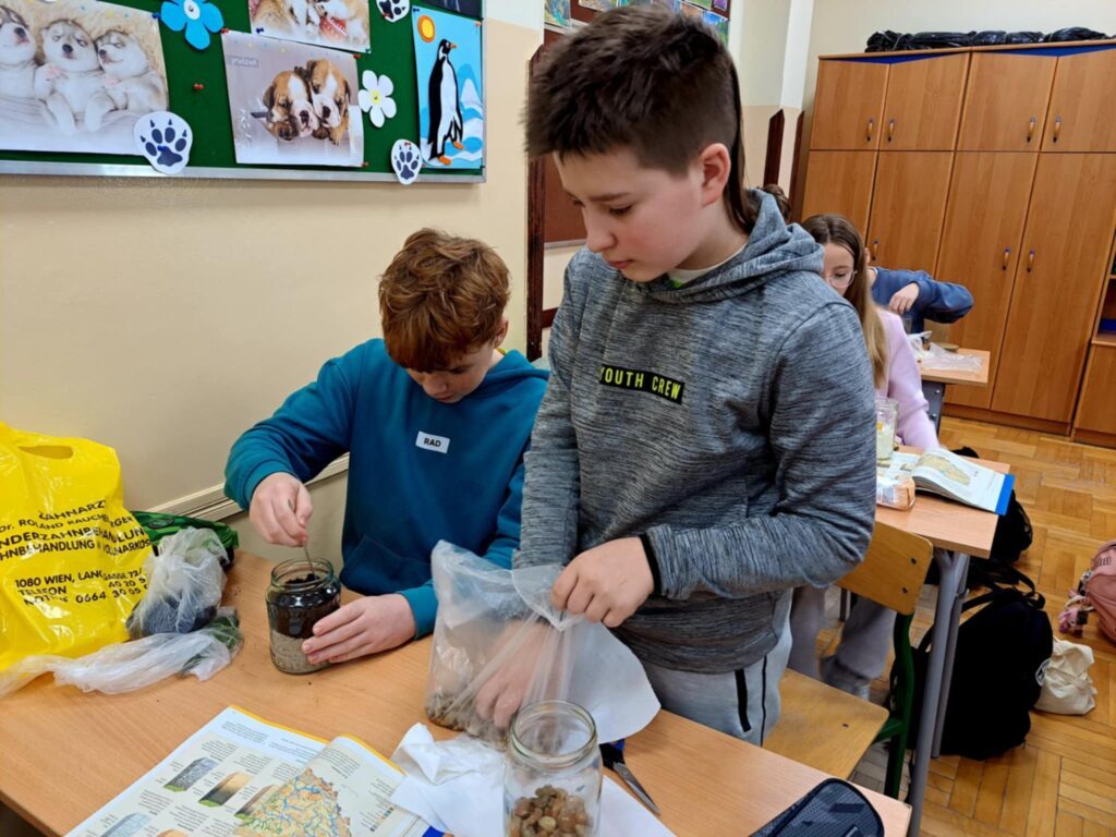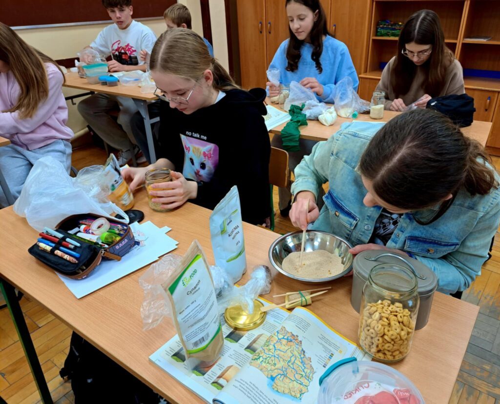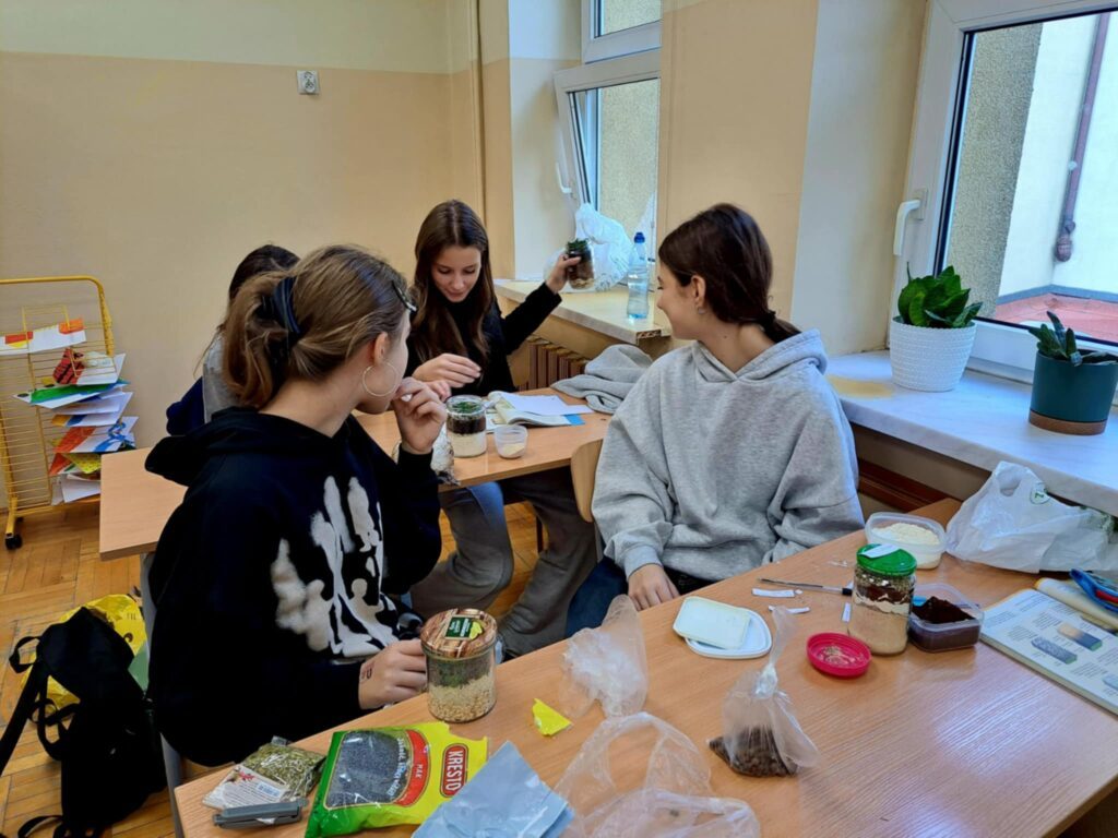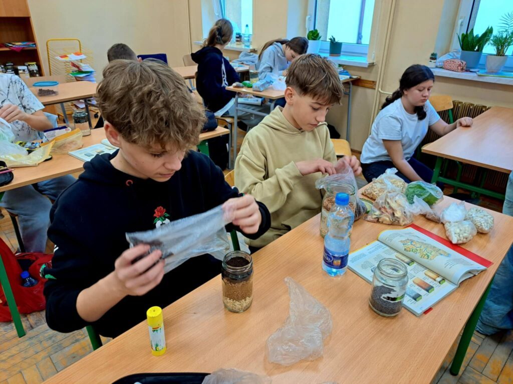 W ramach omawianego na lekcji geografii tematu gleb w Polsce, uczniowie wykonali profile glebowe, czyli jej pionowe przekroje. Do ich tworzenia użyli różnych produktów jakie mogli znaleźć w kuchni lub ogrodzie. Efekty pracy można podziwiać na dołączonych zdjęciach. Wszystkim uczniom gratuluję kreatywności i pomysłowości.