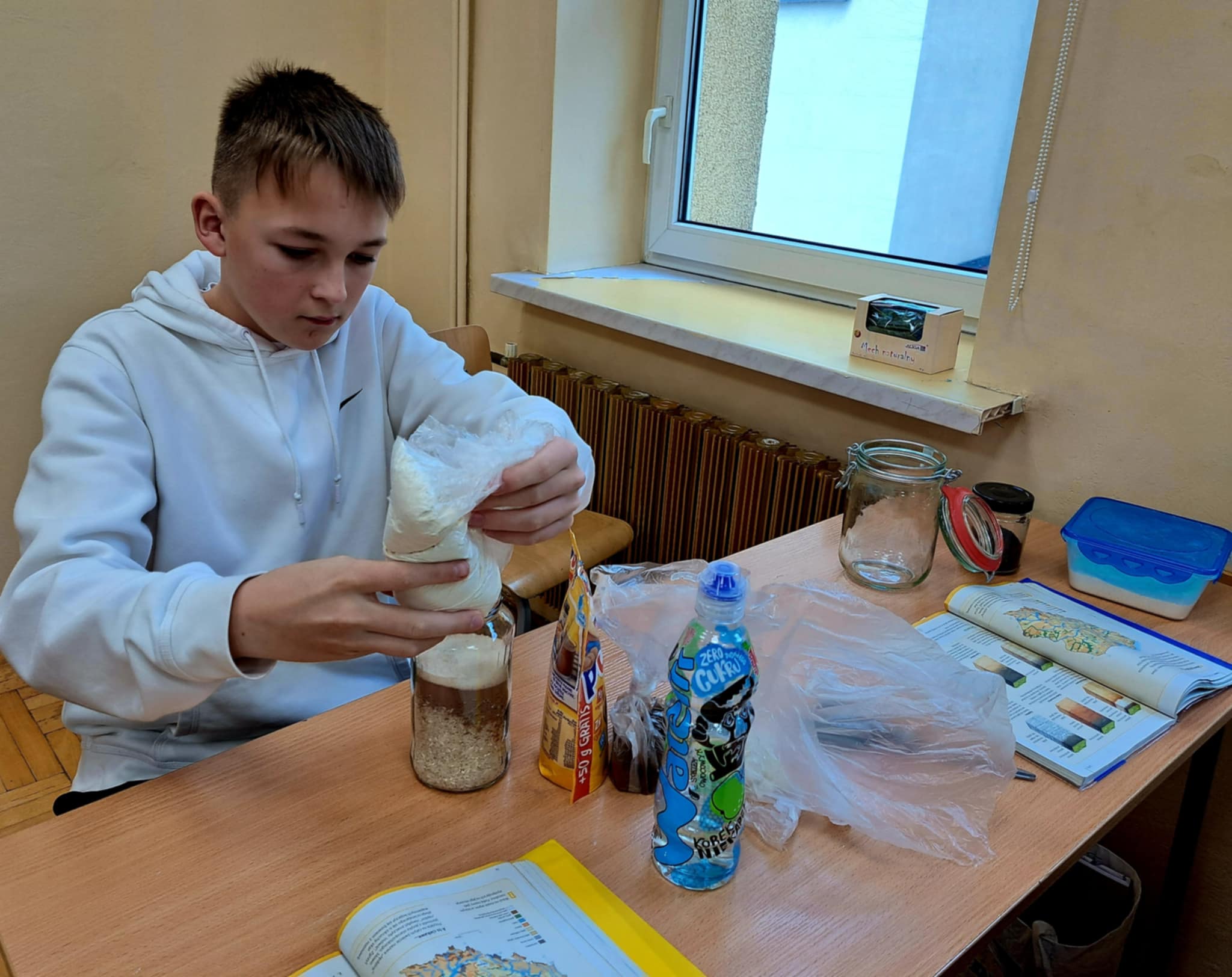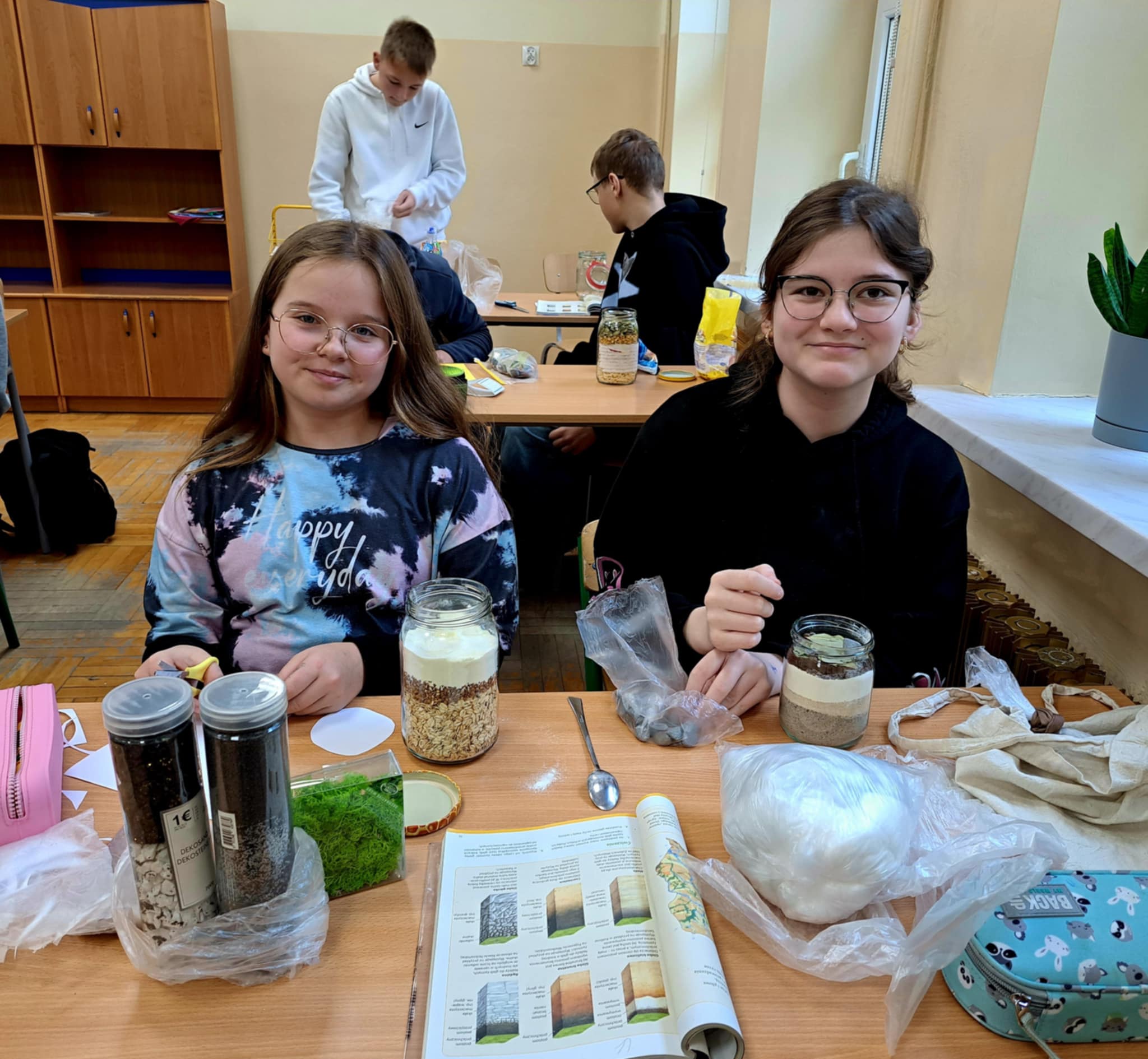 W ramach omawianego na lekcji geografii tematu gleb w Polsce, uczniowie wykonali profile glebowe, czyli jej pionowe przekroje. Do ich tworzenia użyli różnych produktów jakie mogli znaleźć w kuchni lub ogrodzie. Efekty pracy można podziwiać na dołączonych zdjęciach. Wszystkim uczniom gratuluję kreatywności i pomysłowości.
