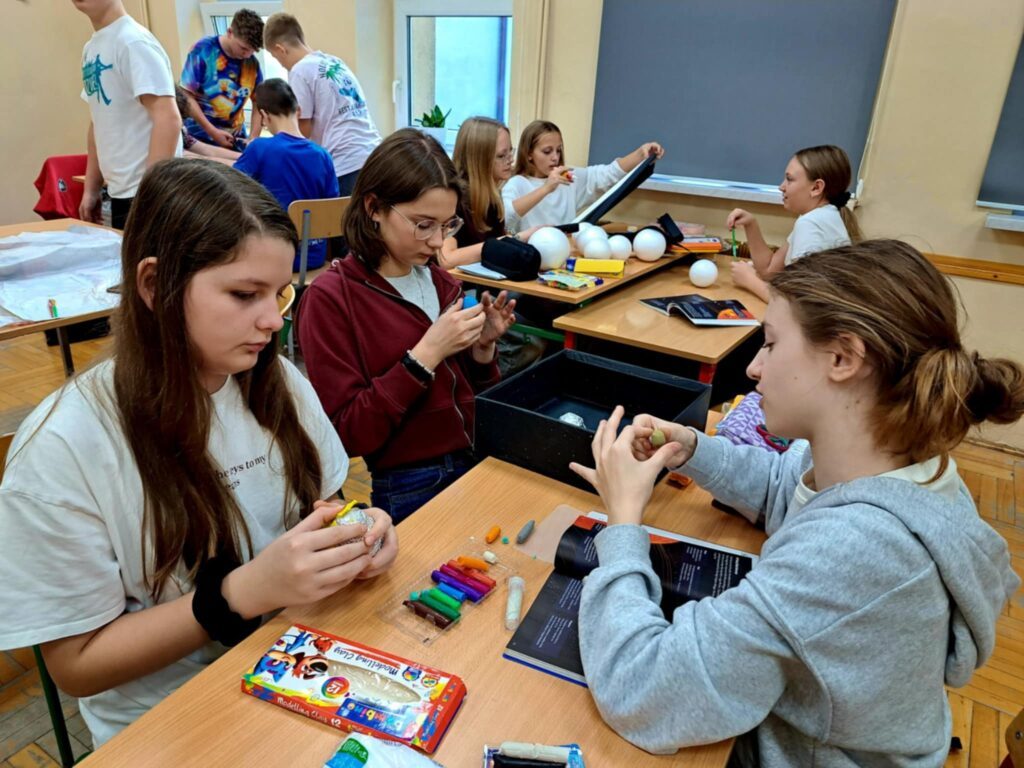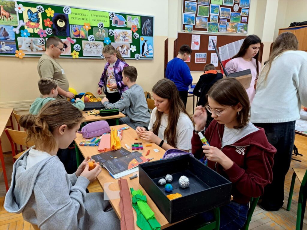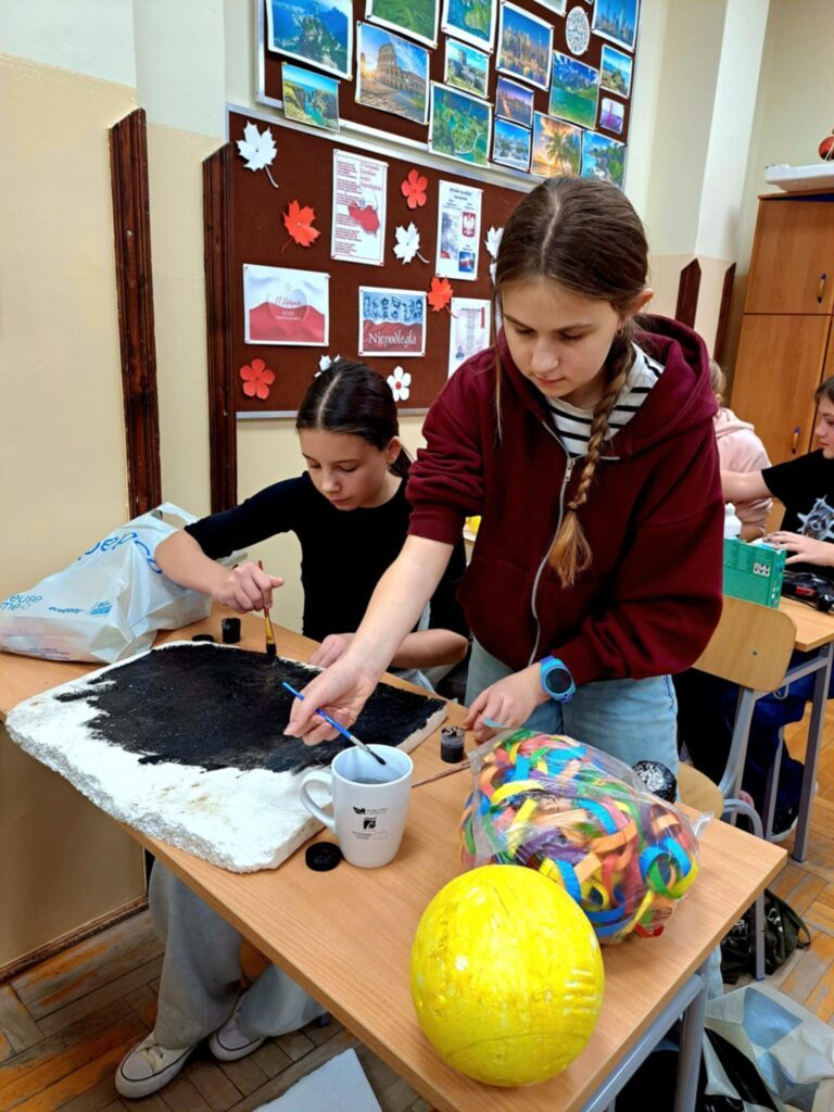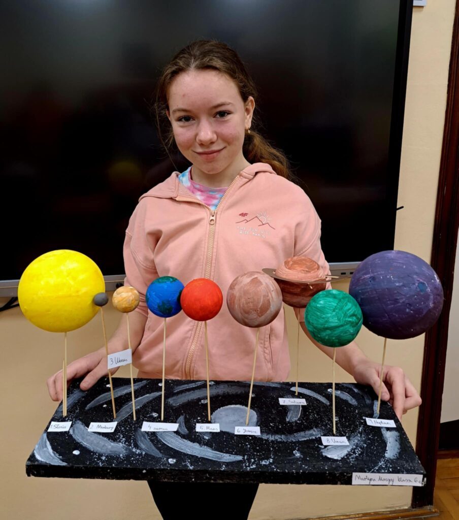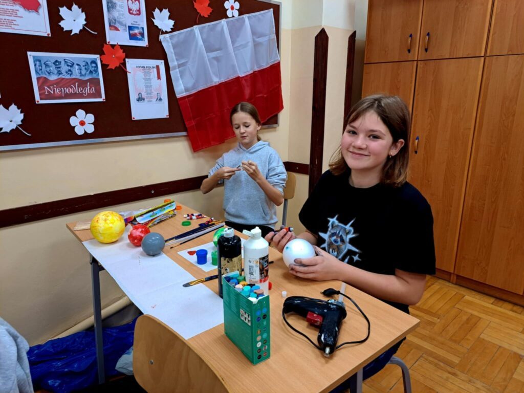 Uczniowie klas szóstych w ramach omawianych zagadnień z geografii dotyczących Wszechświata wykonali piękne modele przedstawiające Nasz Układ Słoneczny. Wszystko przygotowali własnoręcznie wykorzystując tutaj różnego rodzaju materiały. Niektóre prace posiadają swoje oświetlenie co bardzo urealnia wyobrażenie o kosmosie. Wśród modeli są i takie, które mają statki kosmiczne, ufoludków, meteoryty i wile innych elementów, które tam wysoko mogą zobaczyć astronauci i naukowcy.
