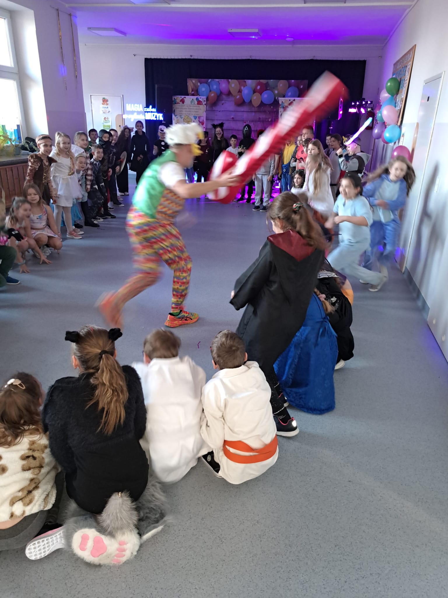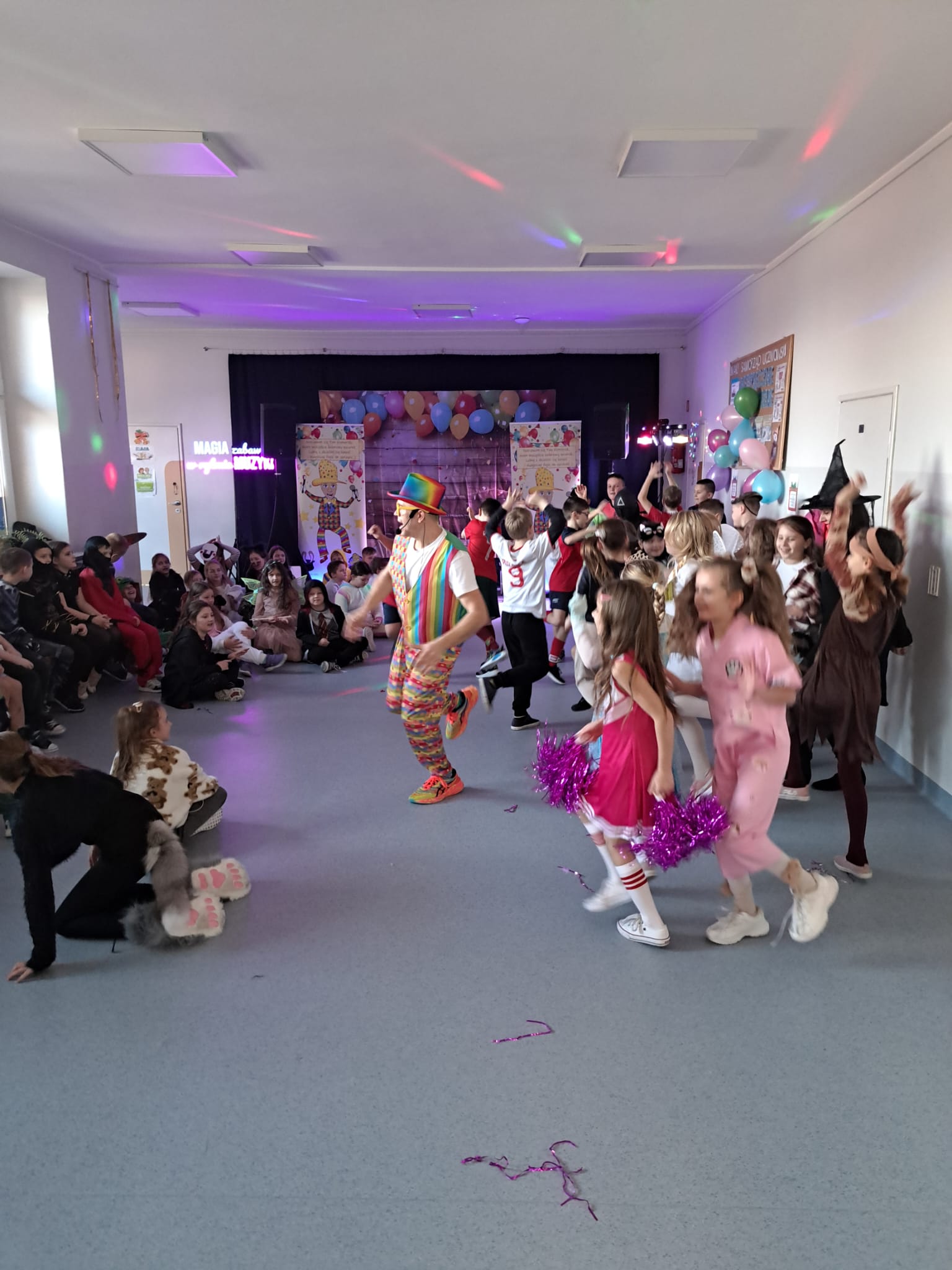We wtorek, 20 stycznia, w naszej szkole odbyła się zabawa karnawałowa dla uczniów klas 1–3. Wspaniałą atmosferę i mnóstwo uśmiechu zapewnił prowadzący – Pan Humorek, który przygotował liczne gry, konkursy i taneczne animacje. Dzieci bawiły się znakomicie, prezentując kolorowe stroje i aktywnie uczestnicząc we wspólnej zabawie. To był dzień pełen radości, muzyki i niezapomnianych wrażeń.