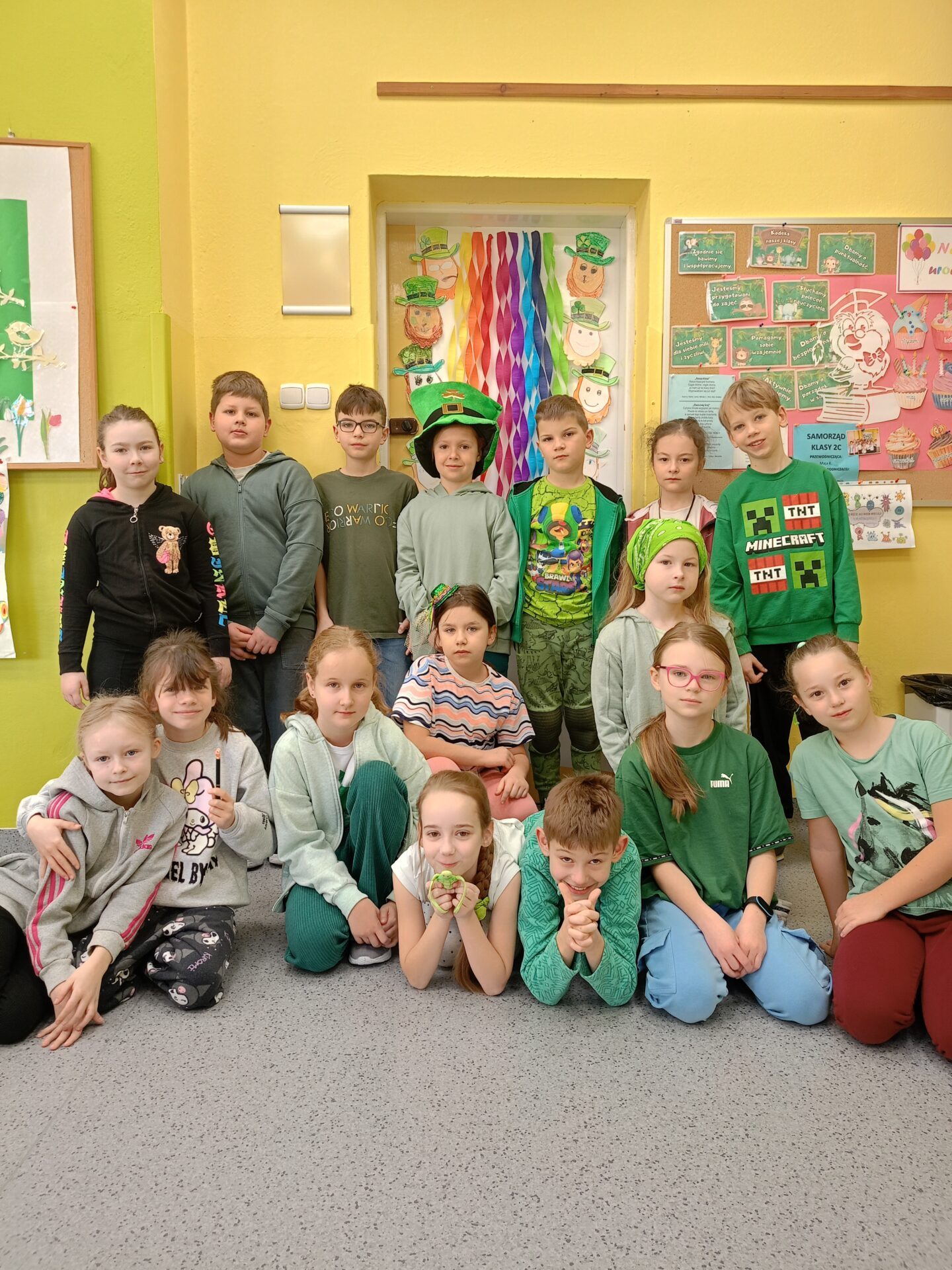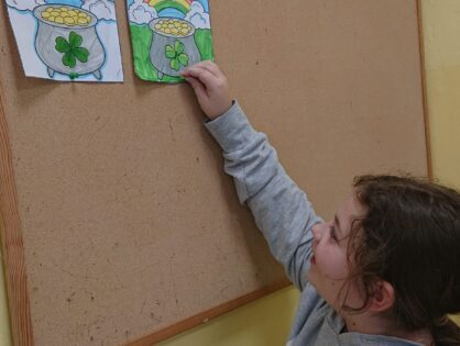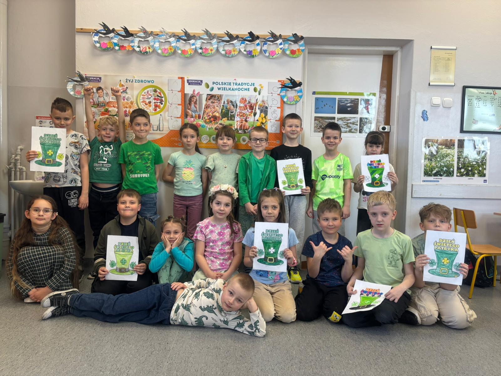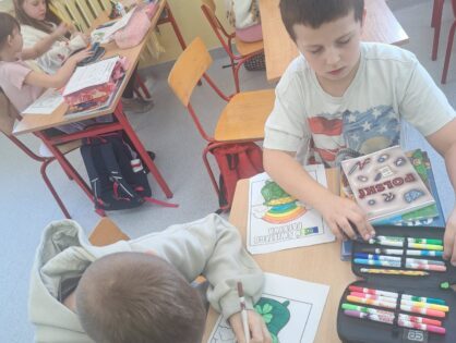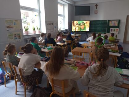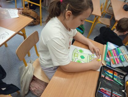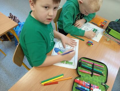 Jak co roku w marcu w naszej szkole uczniowie klas 1-3 wraz z nauczycielami radośnie obchodzili Dzień Świętego Patryka. Tego dnia dzieci przyszły ubrane na zielono, wprowadzając wszystkich w wyjątkowy, irlandzki klimat. Uczniowie obejrzeli tematyczny filmik, który przybliżył im tradycje i zwyczaje związane z obchodami Dnia Świętego Patryka, a następnie z zaangażowaniem wykonywali prace plastyczne oraz kolorowanki związane z tym świętem.
