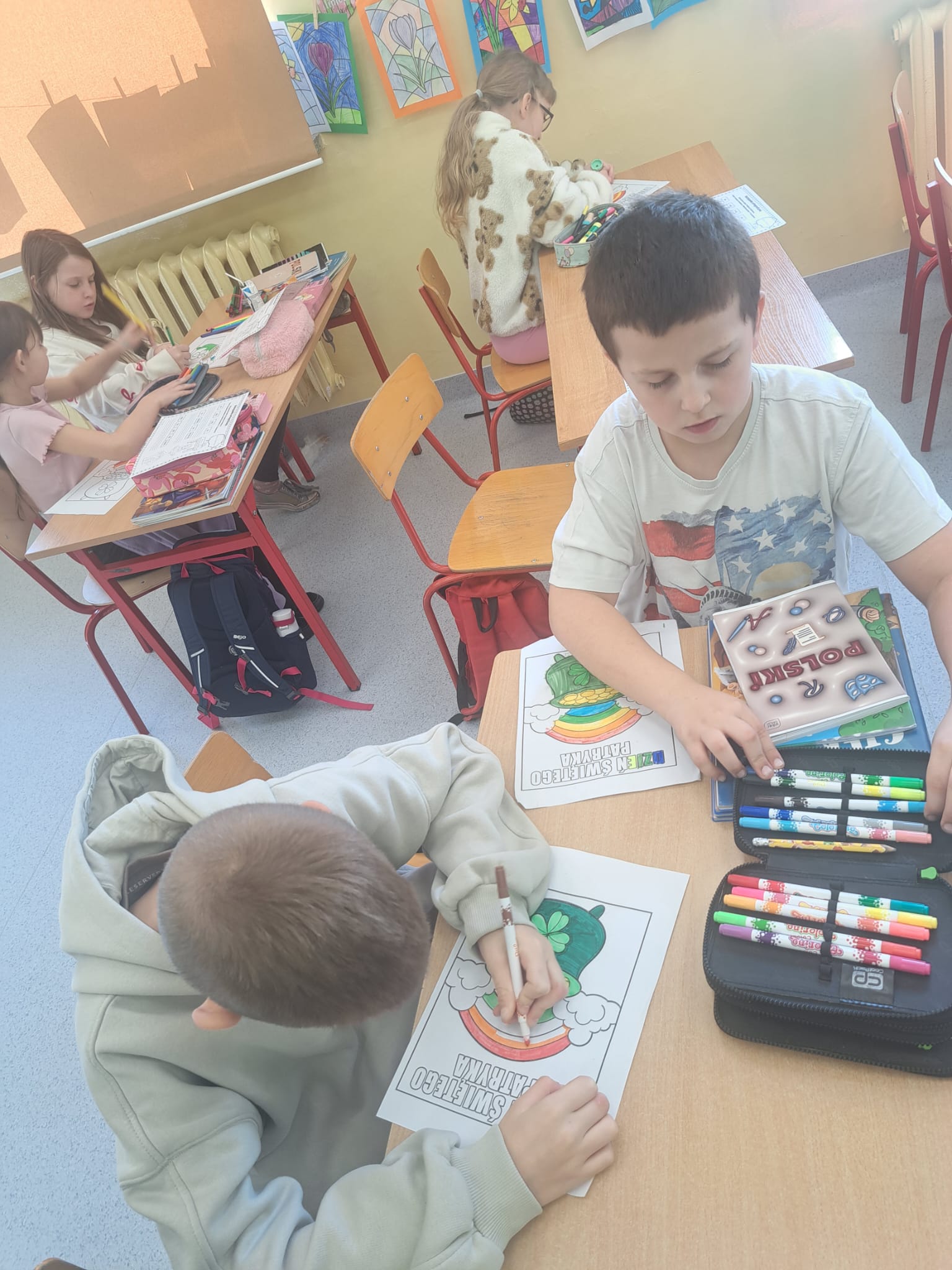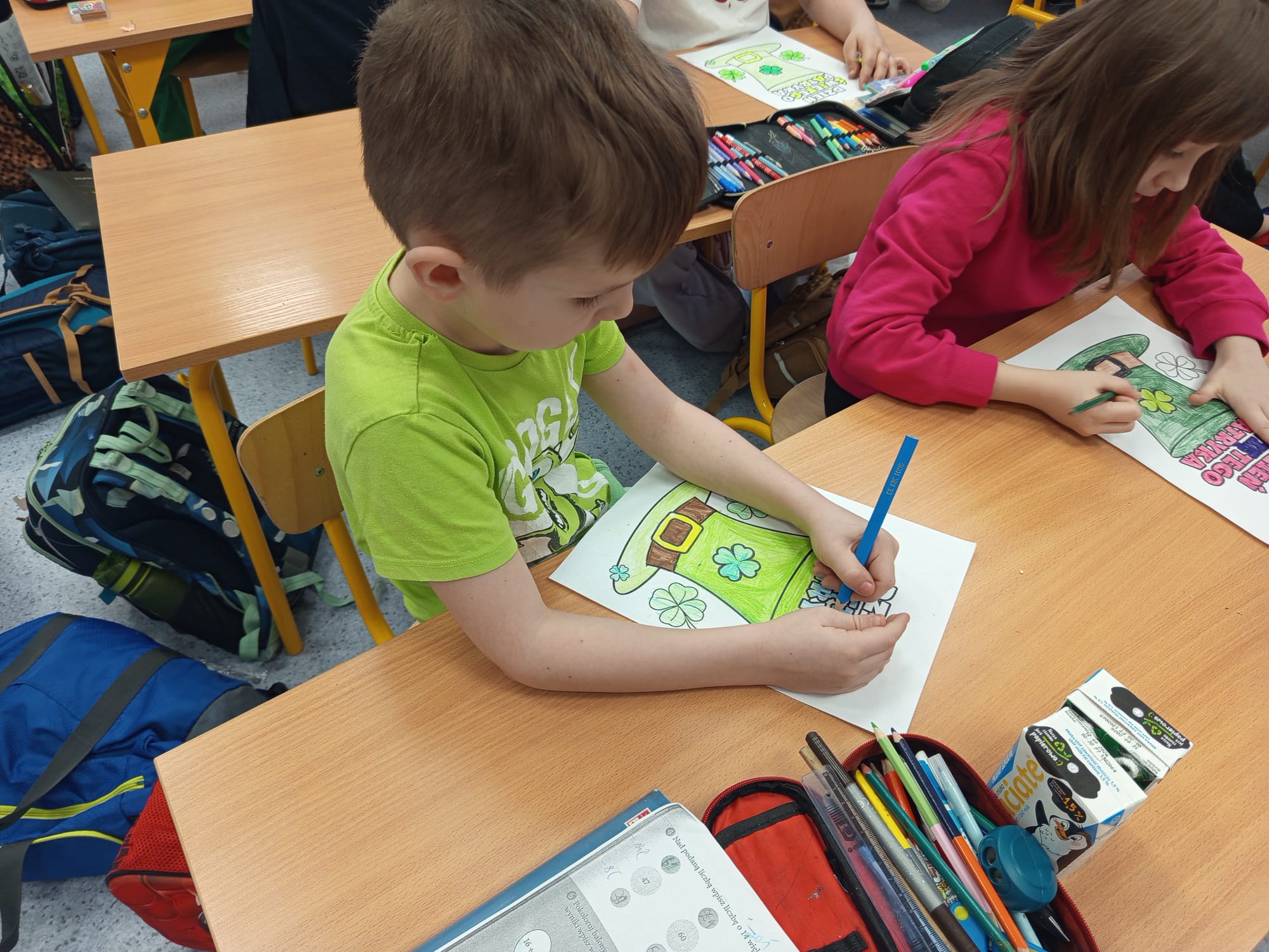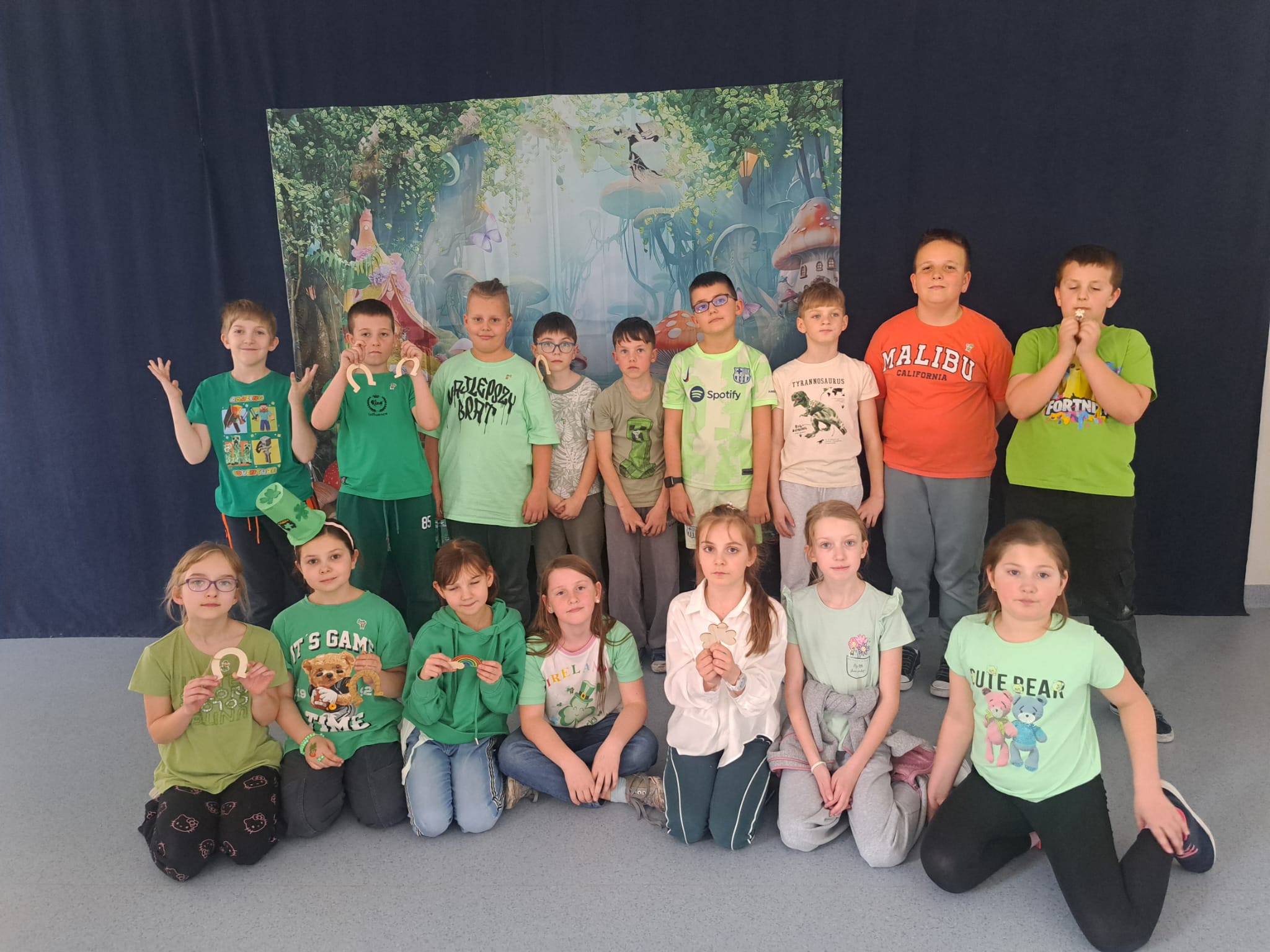 Jak co roku w marcu w naszej szkole uczniowie klas 1-3 wraz z nauczycielami radośnie obchodzili Dzień Świętego Patryka. Tego dnia dzieci przyszły ubrane na zielono, wprowadzając wszystkich w wyjątkowy, irlandzki klimat. Uczniowie obejrzeli tematyczny filmik, który przybliżył im tradycje i zwyczaje związane z obchodami Dnia Świętego Patryka, a następnie z zaangażowaniem wykonywali prace plastyczne oraz kolorowanki związane z tym świętem.