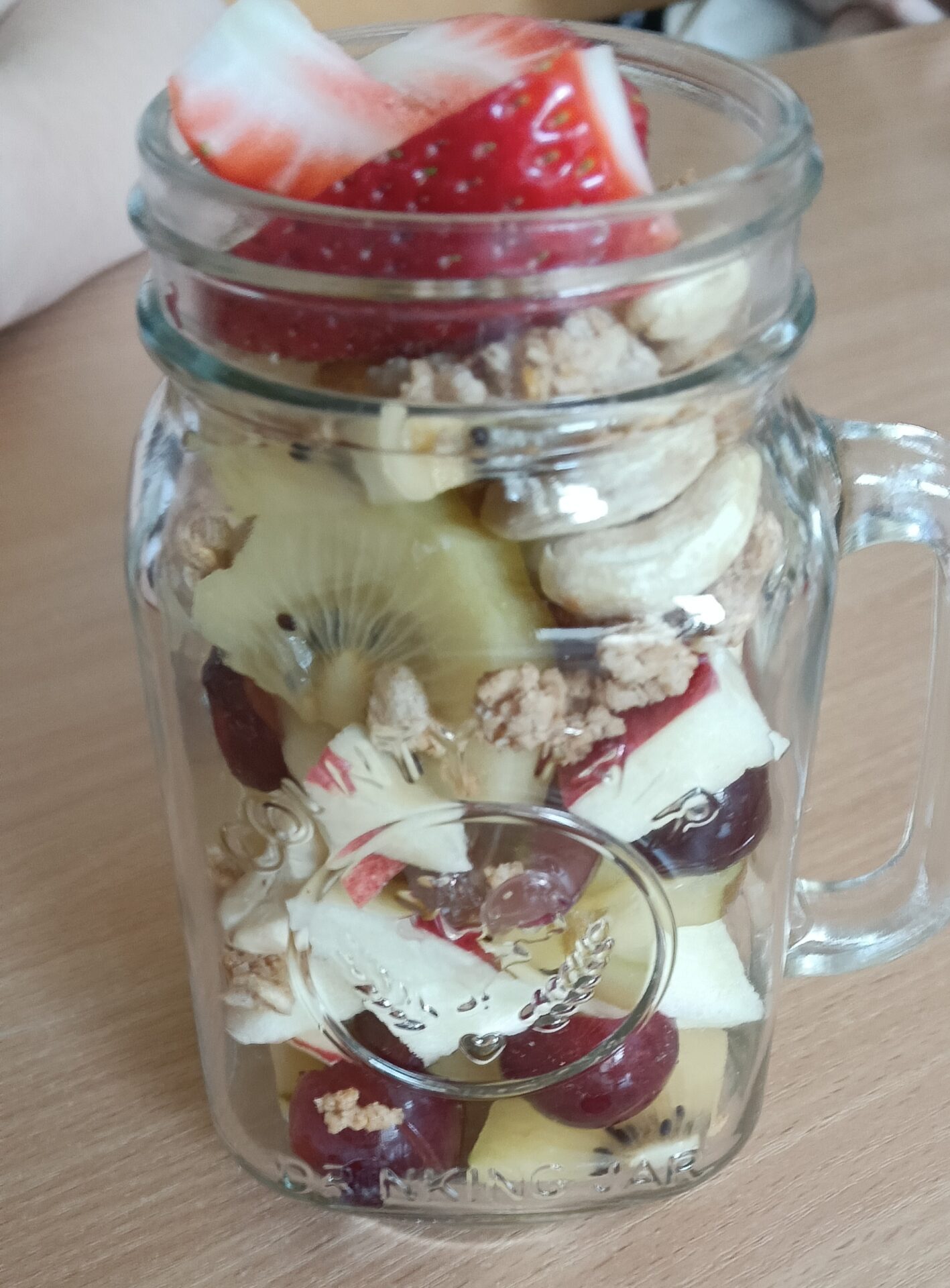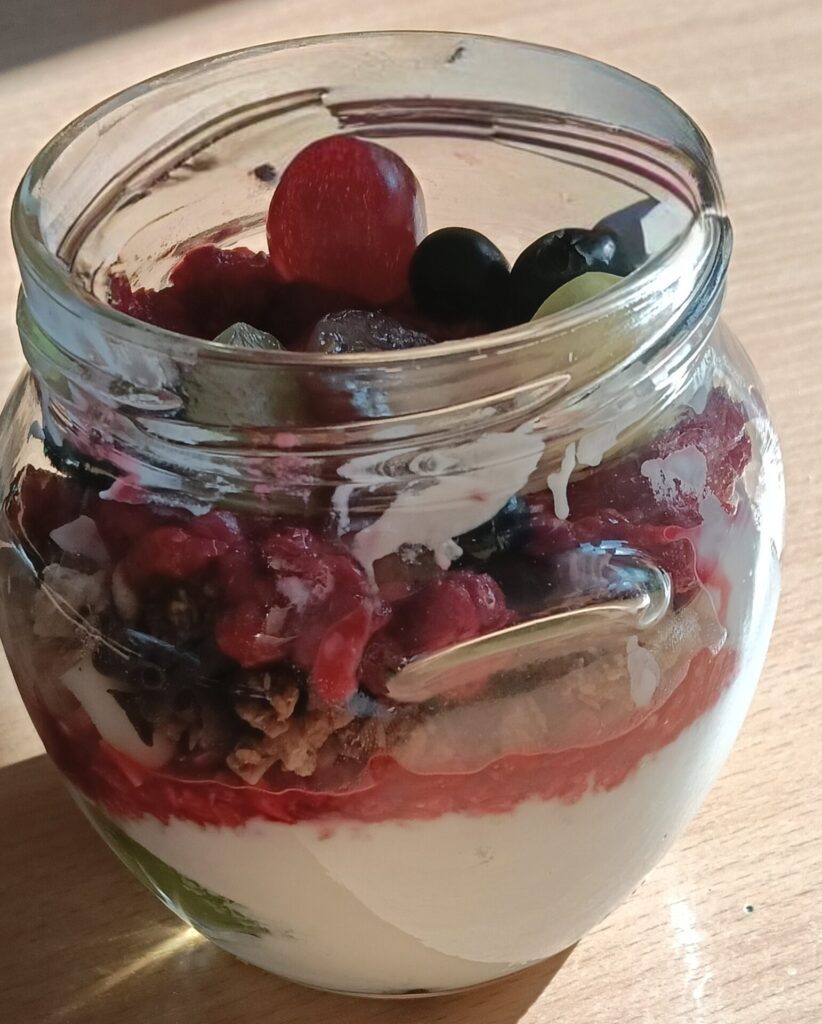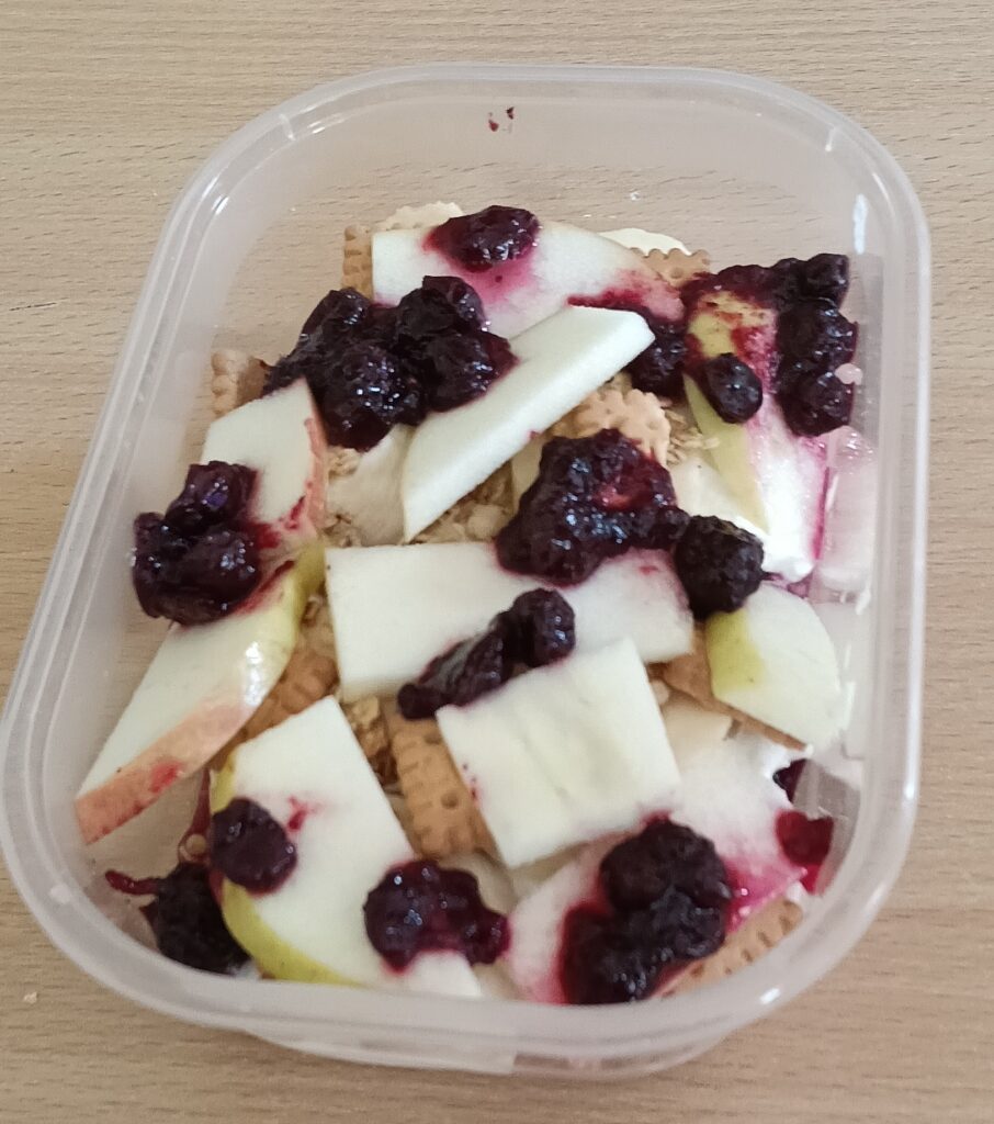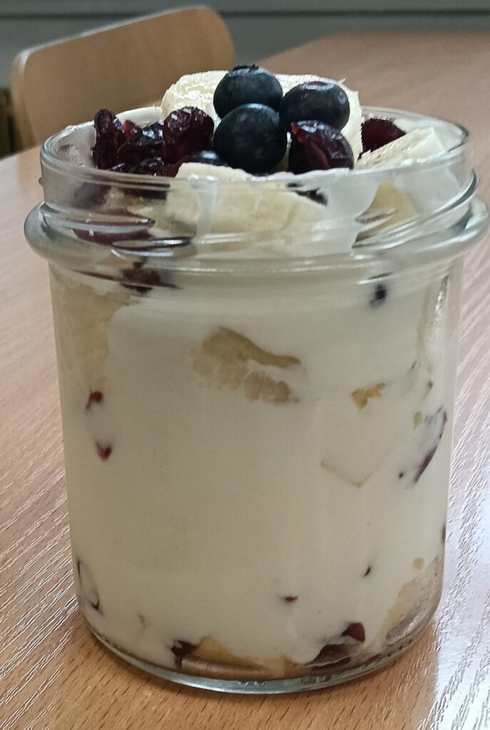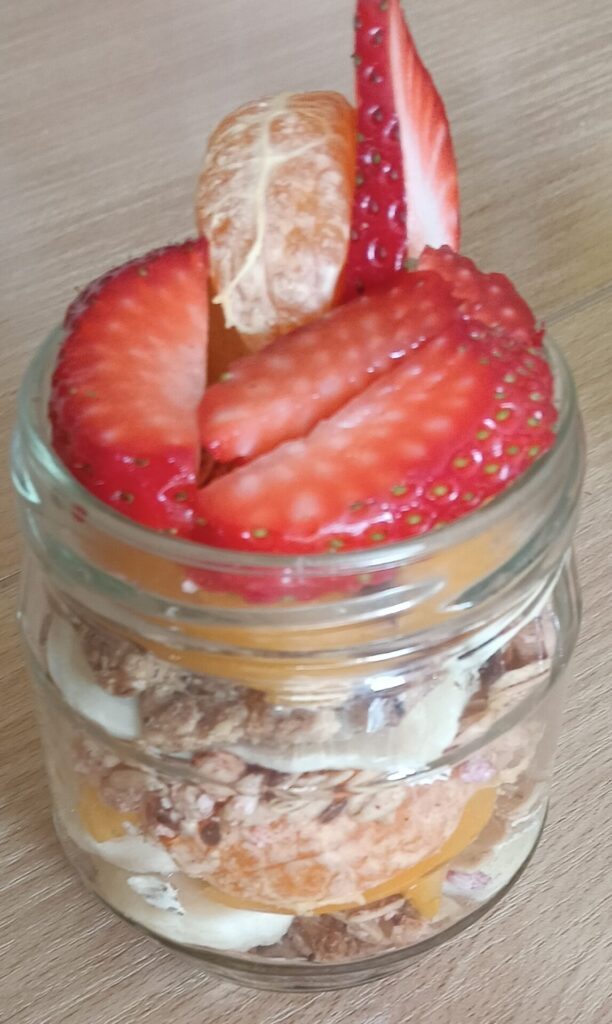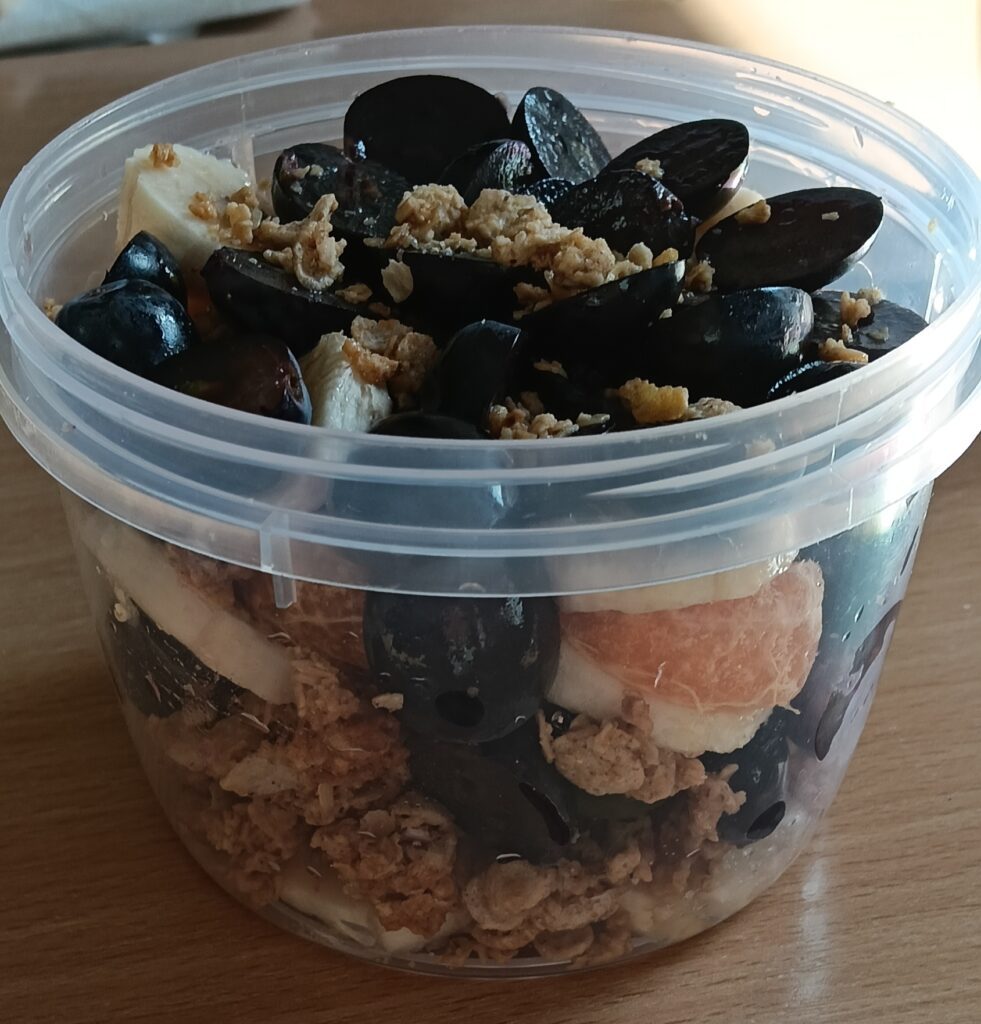 W ramach programu „Trzymaj formę” uczniowie z klas 4-6 zamieniali się w mistrzów zdrowych smaków – przygotowywali sałatki lub desery owocowe. Zajęcia miały zachęcać do konsumpcji zdrowych przekąsek na „podwieczorek”😊, podczas pobytu w szkole lub w trakcie oglądania filmów (jako alternatywa dla podjadania słodyczy, popcornu i chipsów). Większość stwierdziła, że było bardzo smacznie, kolorowo, częściej będą sięgali po takie zdrowe smakołyki i samodzielnie przygotują podobne w domach.