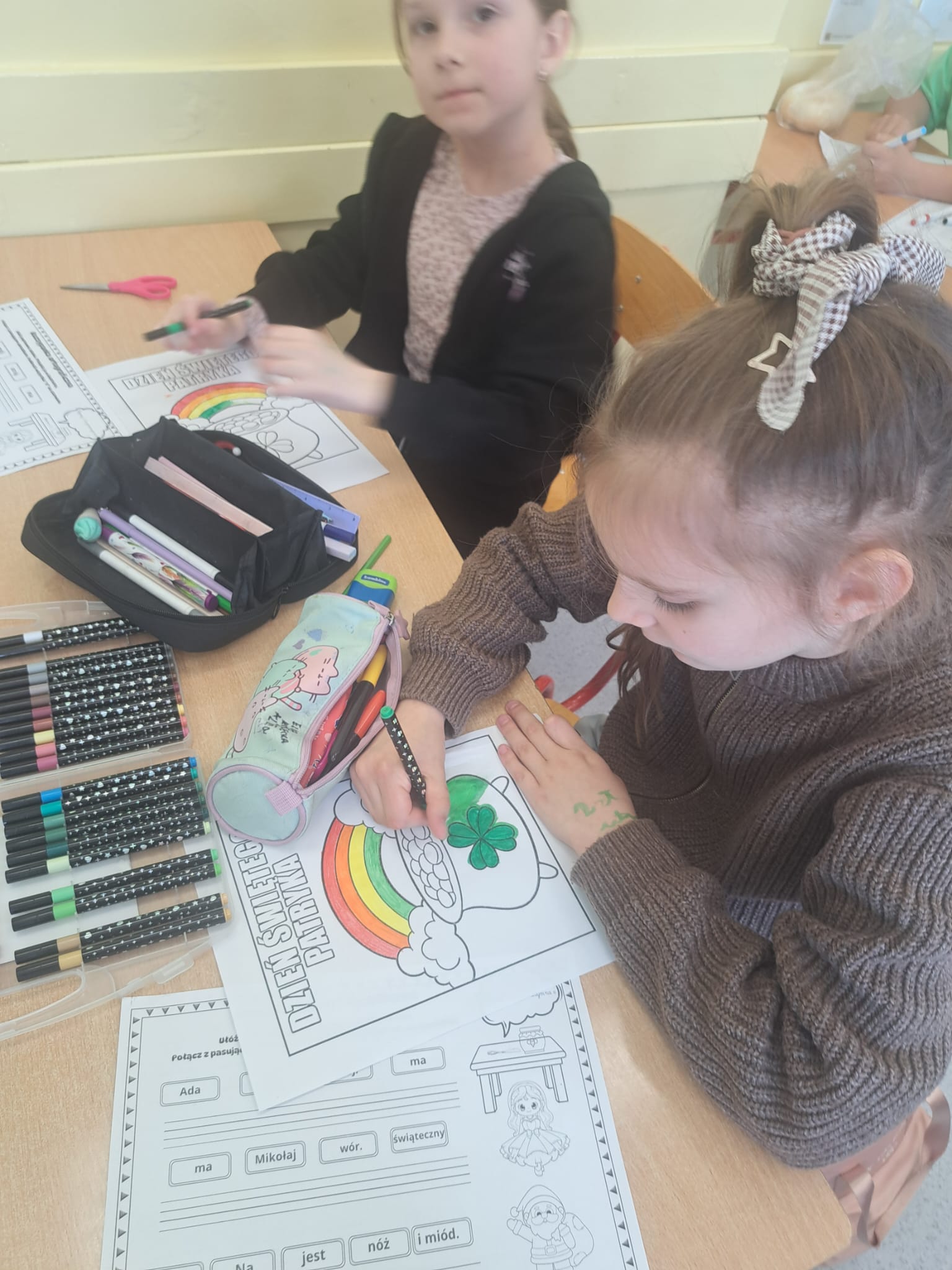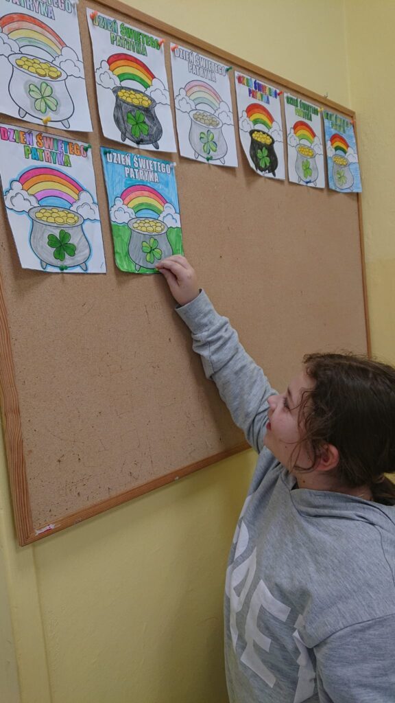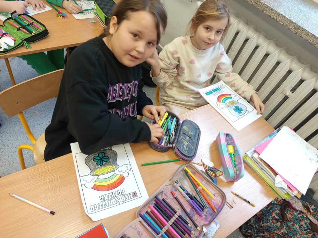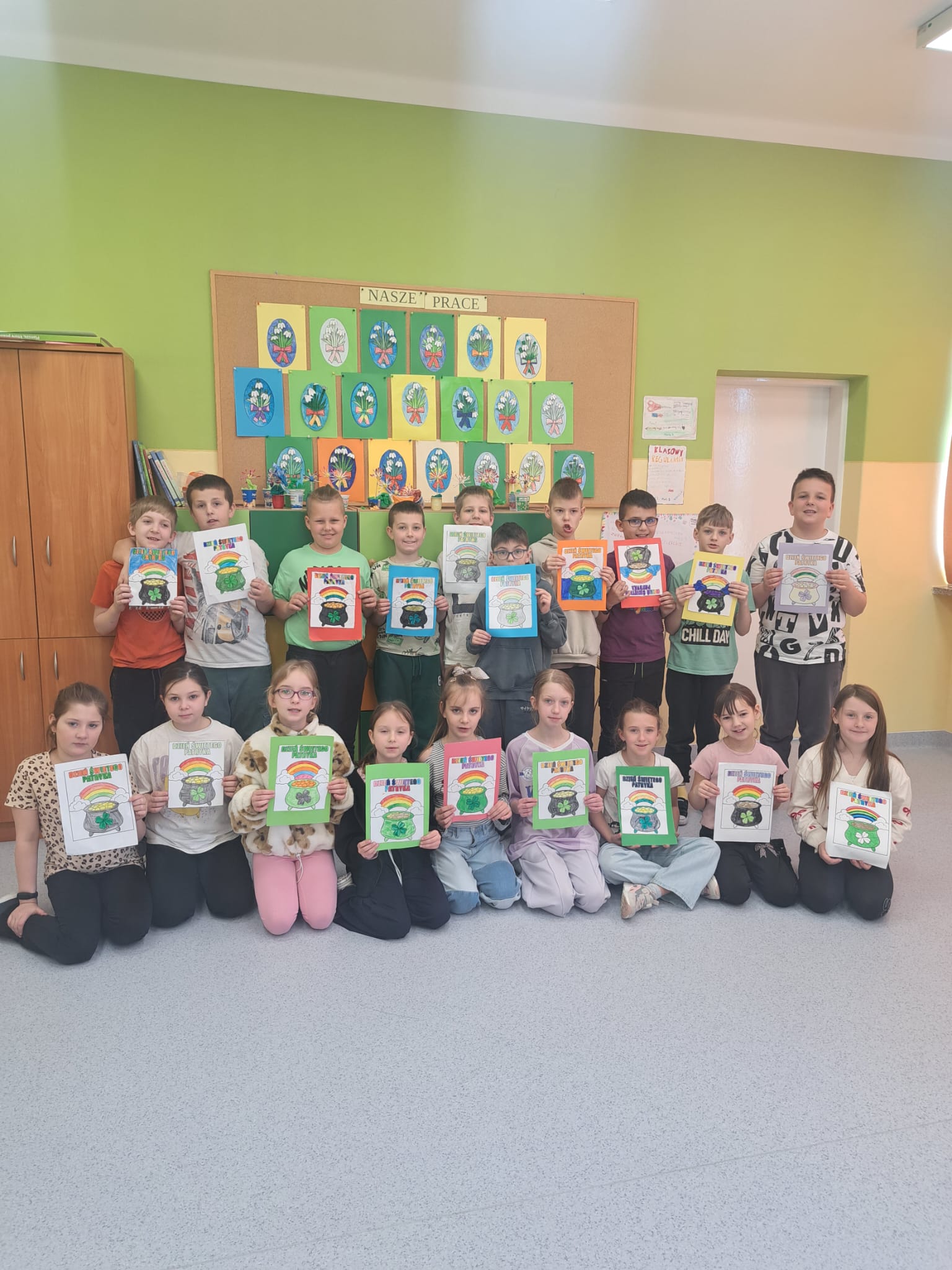 Jak co roku w marcu w naszej szkole uczniowie klas 1-3 wraz z nauczycielami radośnie obchodzili Dzień Świętego Patryka. Tego dnia dzieci przyszły ubrane na zielono, wprowadzając wszystkich w wyjątkowy, irlandzki klimat. Uczniowie obejrzeli tematyczny filmik, który przybliżył im tradycje i zwyczaje związane z obchodami Dnia Świętego Patryka, a następnie z zaangażowaniem wykonywali prace plastyczne oraz kolorowanki związane z tym świętem.