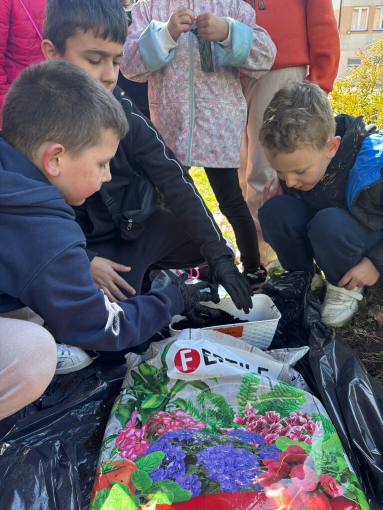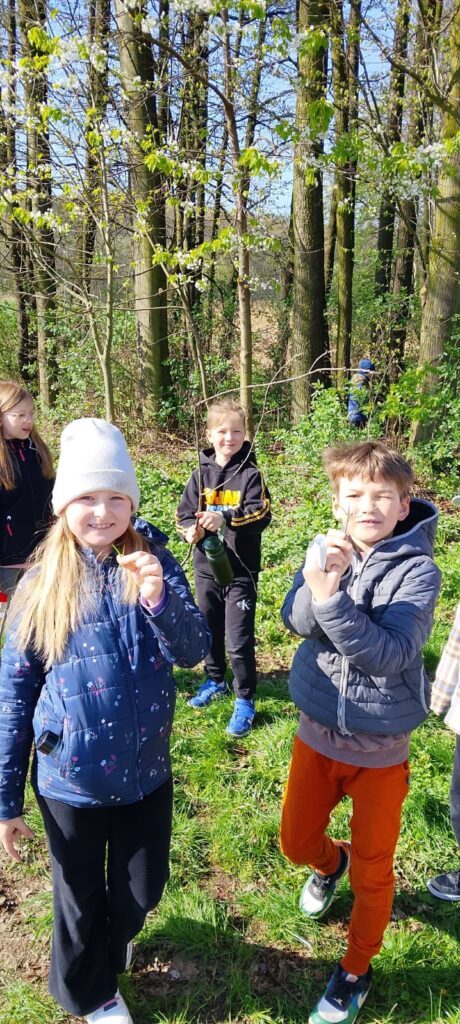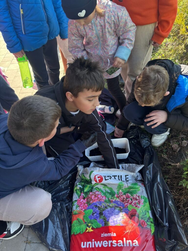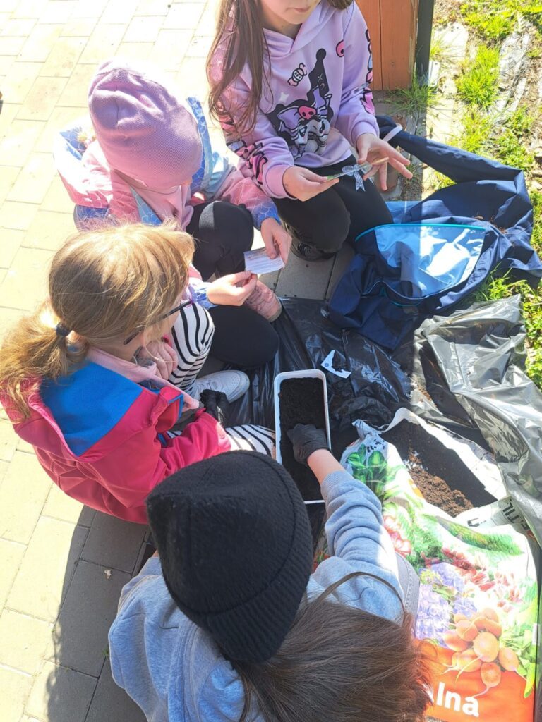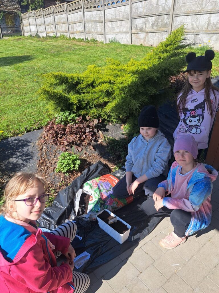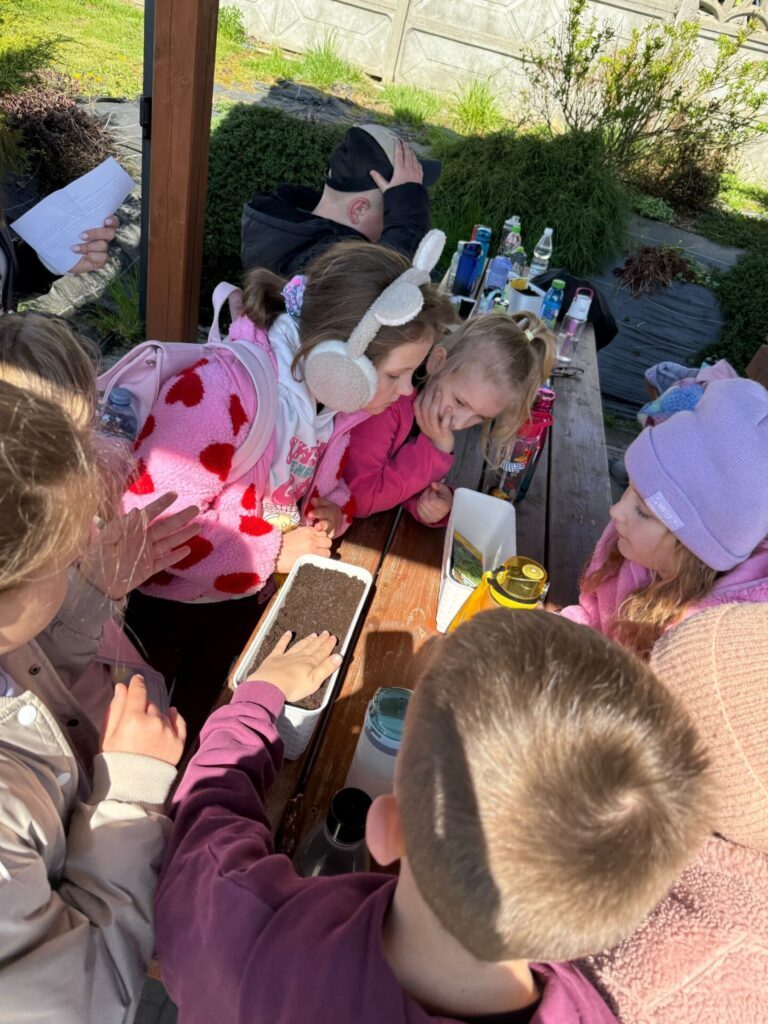 Ważnym elementem podchodów było budowanie świadomości ekologicznej poprzez praktyczne działanie. Uczniowie przypominali sobie zasady segregacji odpadów, rozwiązywali zagadki przyrodnicze, a na zakończenie zasiali własne zioła – miętę i bazylię. Przez kolejne tygodnie będą pielęgnować swoje rośliny w klasach, obserwując ich wzrost i ucząc się odpowiedzialności za naturę.
