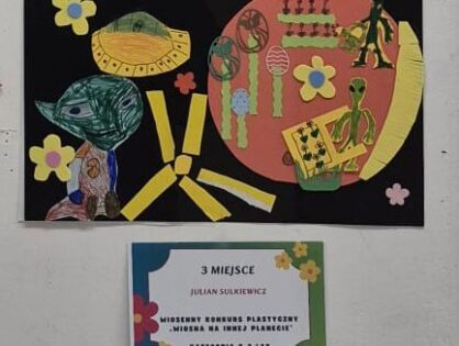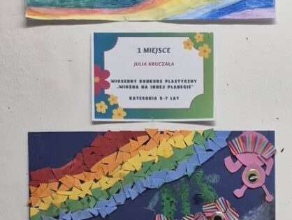 Uczniowie klasy 1a wzięli udział w konkursie plastycznym „Wiosna na innej planecie”, organizowanym przez Dom Kultury w Kętach.