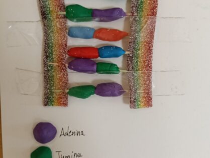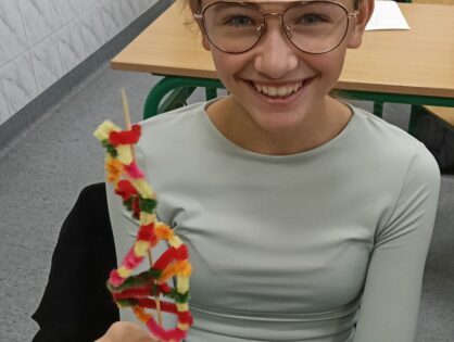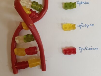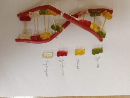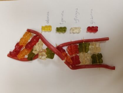 Na lekcjach biologii w kl. 8a i 8b teoria spotkała się z praktyką – uczniowie budowali modele DNA, m. in. z żelków! Ponadto z patyczków do uszu, kolorowych rurek, drucików lub innych materiałów dekoracyjnych. To właśnie ten związek jest nośnikiem informacji genetycznej – są w nim zapisane informacje o cechach organizmu w postaci genów. Uczniowie utrwalili budowę nukleotydu DNA oraz zasadę komplementarności. Było twórczo, wesoło, a na koniec smacznie! ...