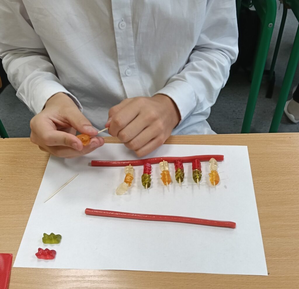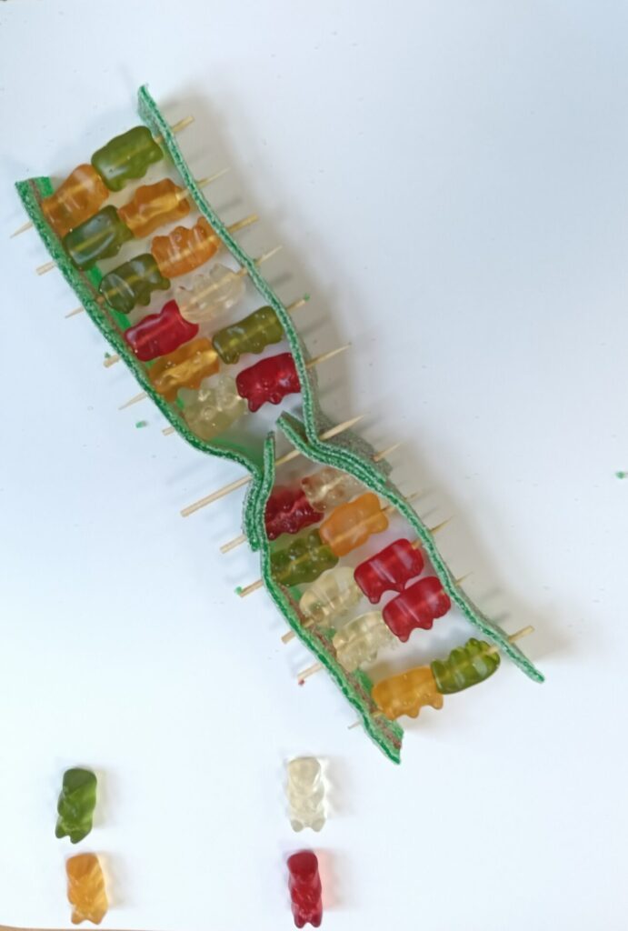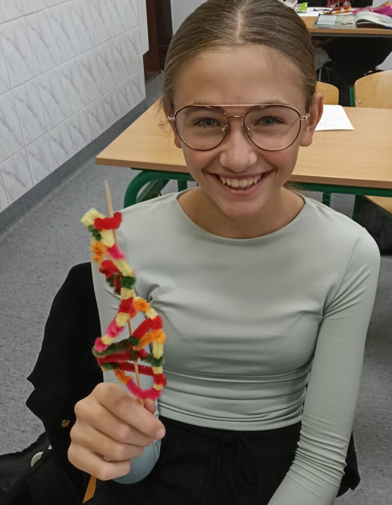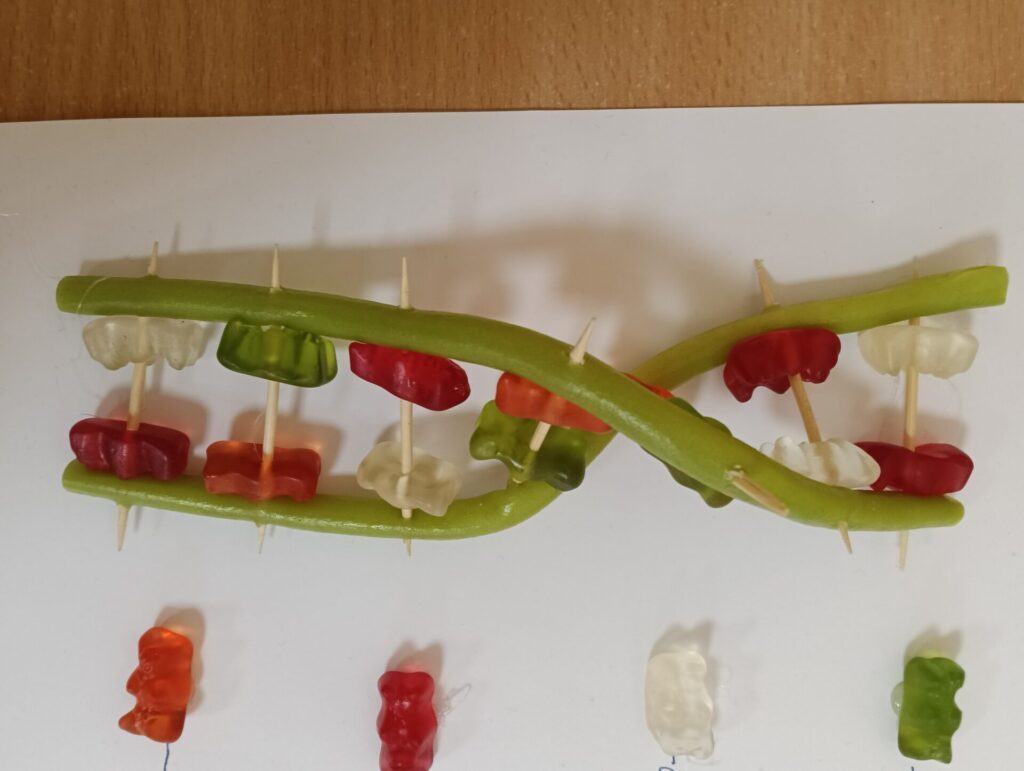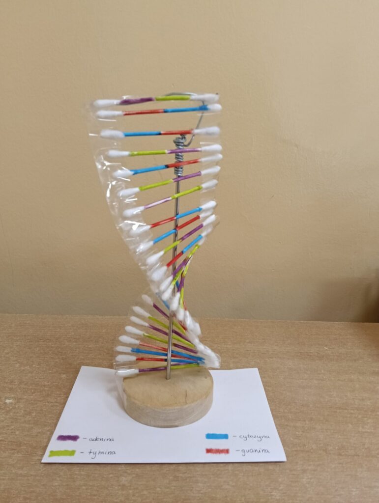 Na lekcjach biologii w kl. 8a i 8b teoria spotkała się z praktyką – uczniowie budowali modele DNA, m. in. z żelków! Ponadto z patyczków do uszu, kolorowych rurek, drucików lub innych materiałów dekoracyjnych. To właśnie ten związek jest nośnikiem informacji genetycznej – są w nim zapisane informacje o cechach organizmu w postaci genów. Uczniowie utrwalili budowę nukleotydu DNA oraz zasadę komplementarności. Było twórczo, wesoło, a na koniec smacznie! Galeria ukazuje uczniów podczas pracy oraz efekty.