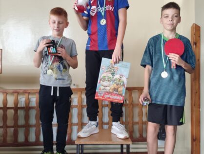13 listopada 2025 roku odbył się Szkolny Turniej Tenisa Stołowego. W rozgrywkach tych uczniowie zagrali w dwóch kategoriach dziewcząt i chłopców. Udział wzięło 19 osób. Najlepszymi zawodnikami i uczniami, którzy będą reprezentować naszą szkołę w kategorii klas 4-6 zostali Zuzanna Jarosz, Kamil Jankowski i Mateusz Ziaja. W kategorii klas 7-8 zwycięzcami zostali Aurelia Drabczyk, Oliwia Sala, Dariusz Dudkiewicz i Igor Bałys. Życzymy zwycięstwa w zawodach powiatowych.