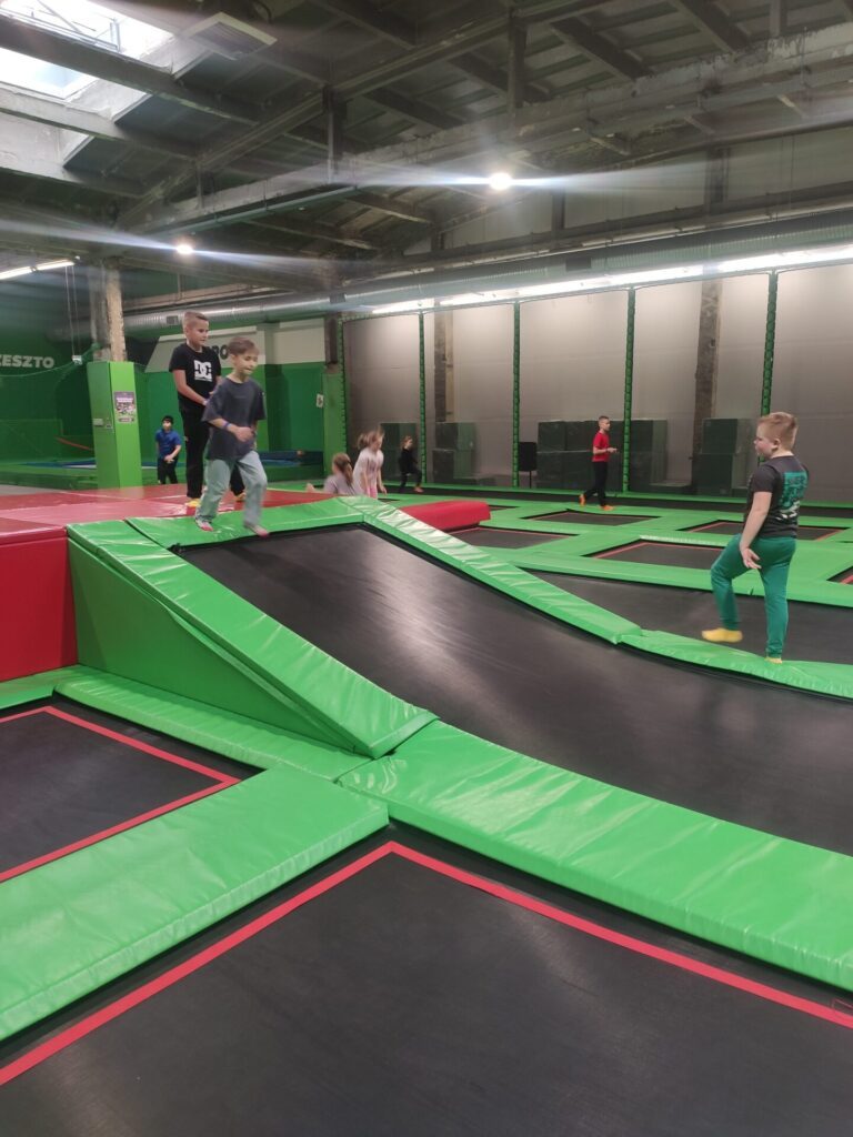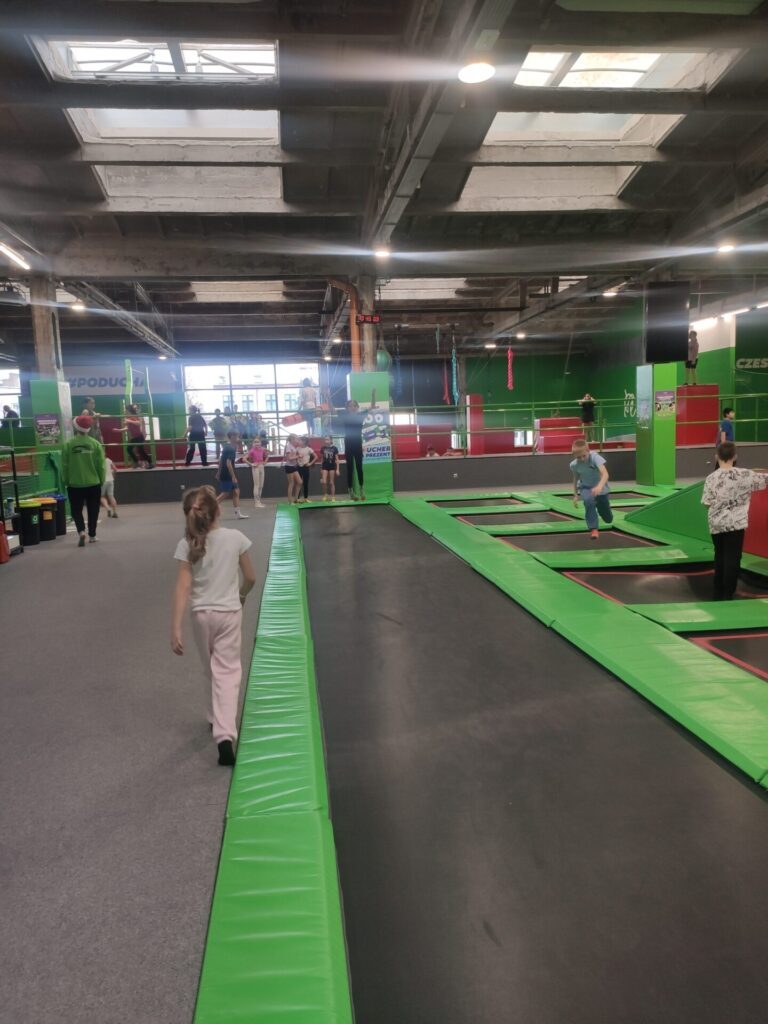 W dniu 04.12.2025 r. klasy 4a i 4c uczestniczyły w wycieczce autokarowej do Parku Trampolin GOjump w Bielsku Białej.Celem naszego wyjazdu było wyrabianie nawyku aktywnego spędzania wolnego czasu oraz rozwijanie zainteresowania sportem. Przygoda uczniów z trampolinami rozpoczęła się od rozgrzewki prowadzonej przez instruktora, który przypomniał o zasadach obowiązujących na terenie parku, bezpiecznym zachowaniu oraz pokazał skoki z różnymi urozmaiceniami. Uczniowie co do minuty wykorzystali przysługujący im czas i skorzystali ze wszystkich dostępnych atrakcji: ścieżek akrobatycznych, trampolin sportowych. Wszyscy z radością skakali na trampolinach, niektórzy wykonywali nawet salta. Ciekawą atrakcją był również basen z gąbkami. W drodze powrotnej nie mogło zabraknąć obowiązkowego punku programu, czyli posiłku w Mc Donaldzie.