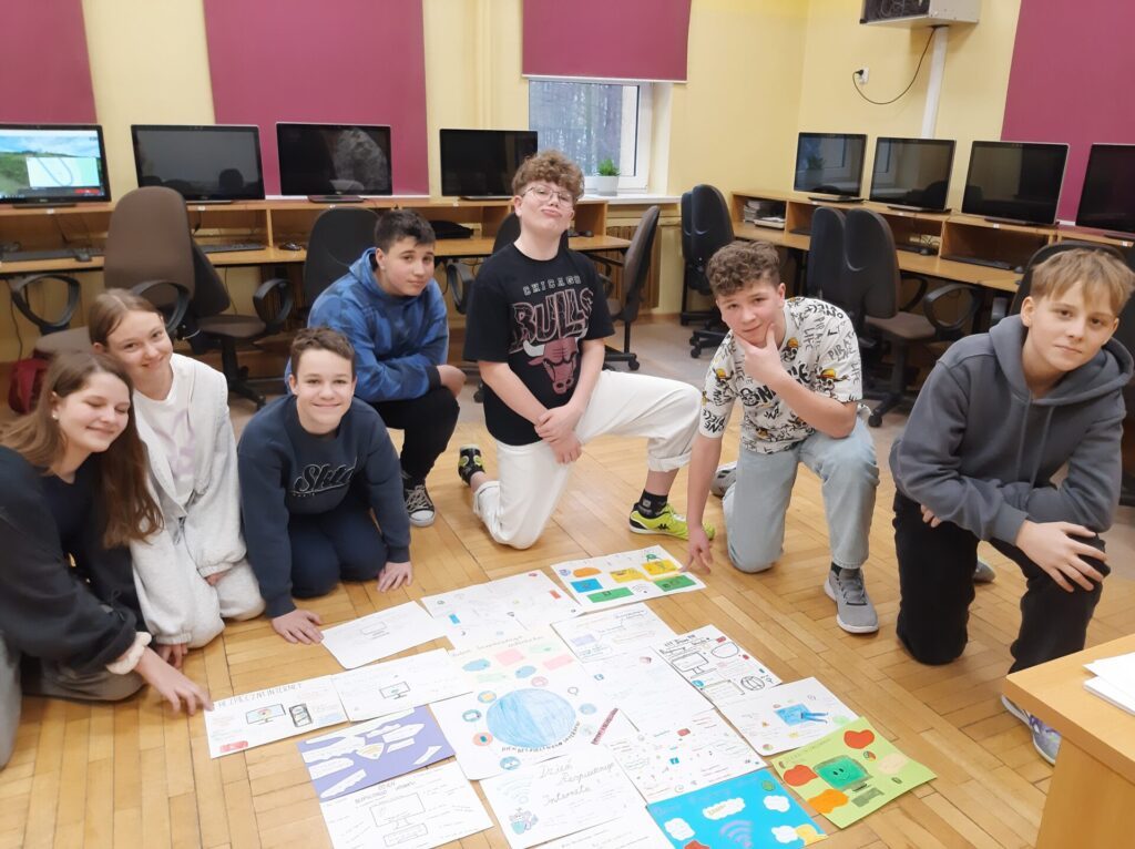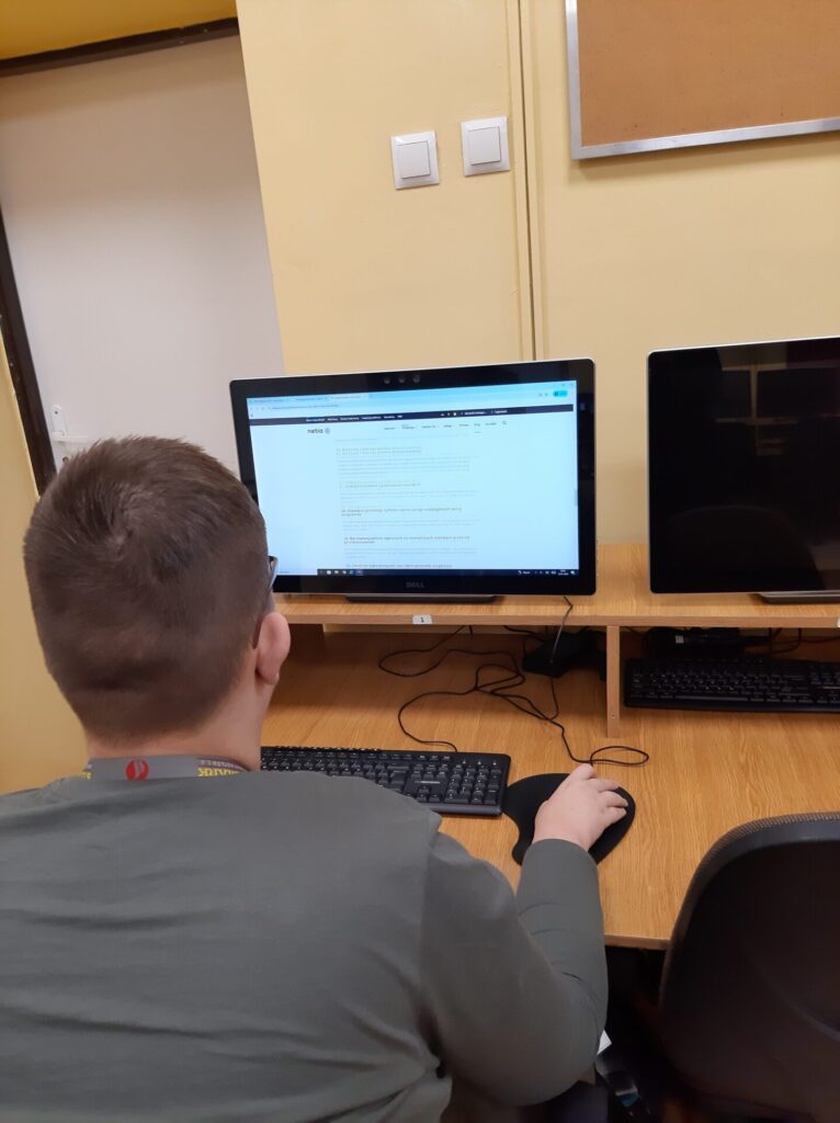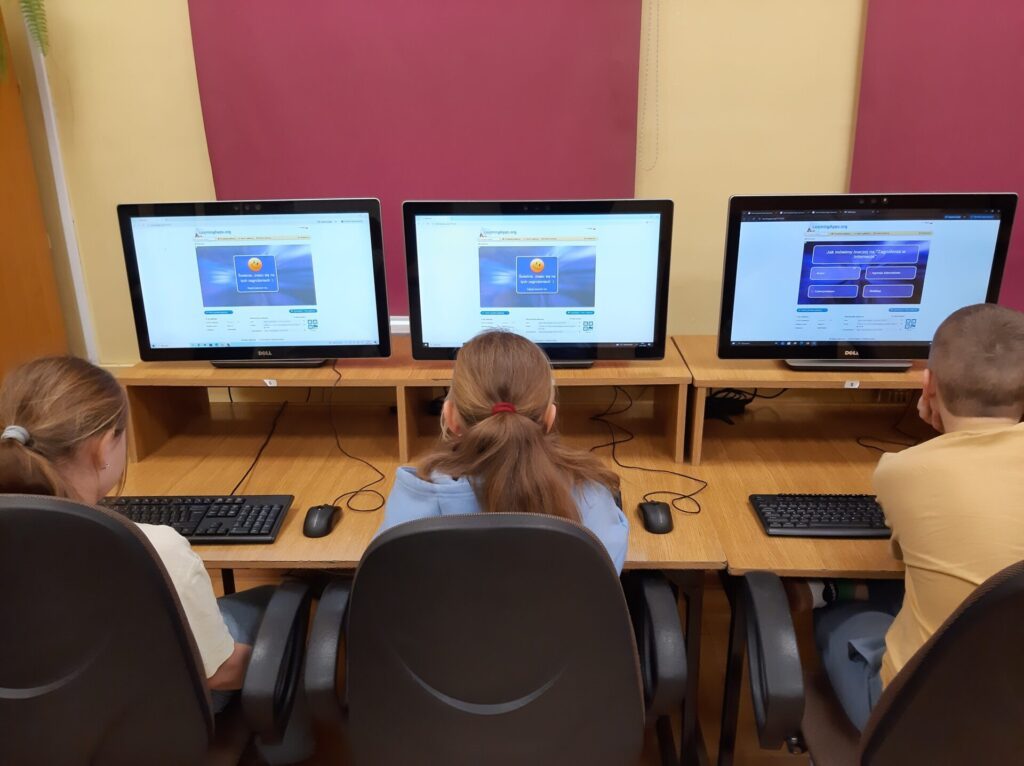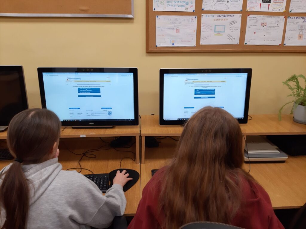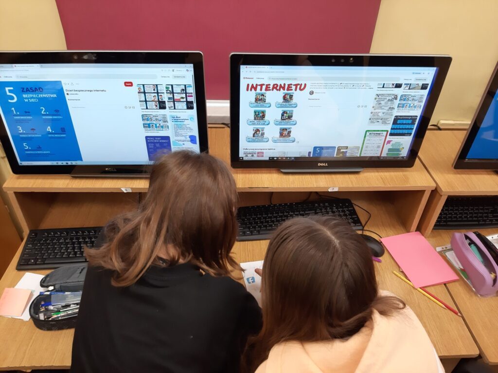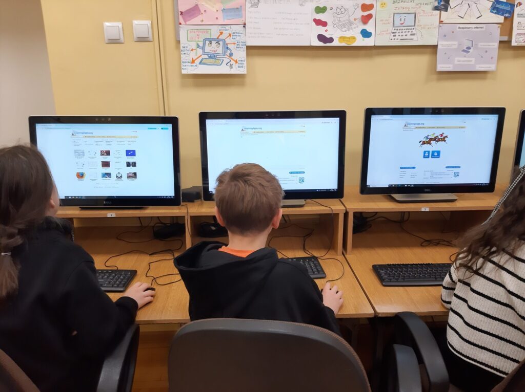 Uczniowie pracowali w grupach, wykonując plakaty tematyczne promujące bezpieczne zachowania w sieci. Dodatkowo rozwiązywali krzyżówki oraz quizy online, które w atrakcyjnej formie utrwalały zdobytą wiedzę. Zajęcia miały charakter aktywizujący i angażujący, sprzyjający współpracy oraz rozwijaniu kompetencji cyfrowych.