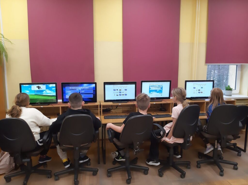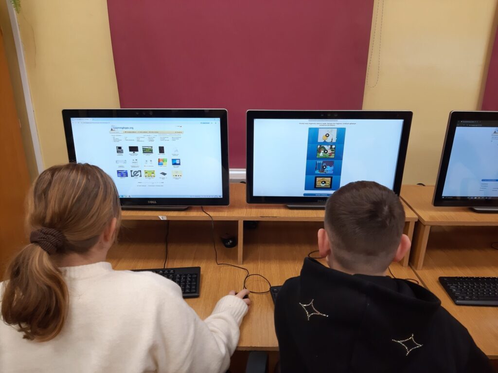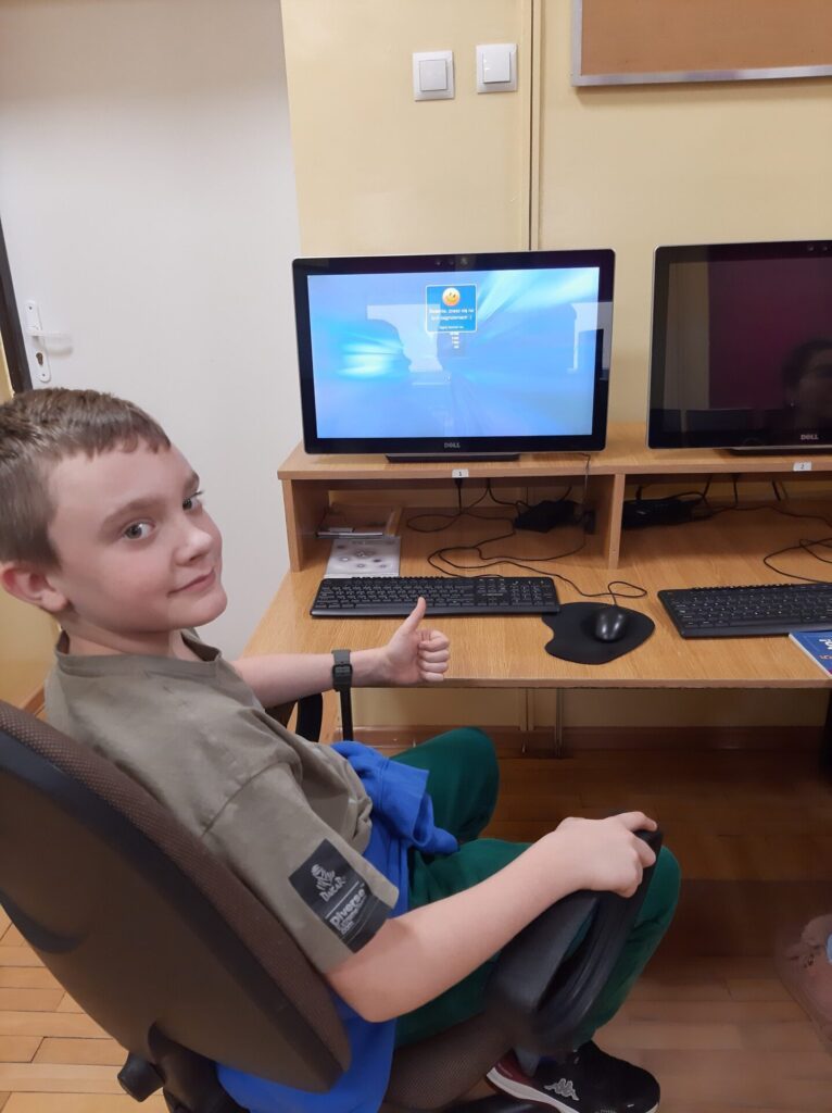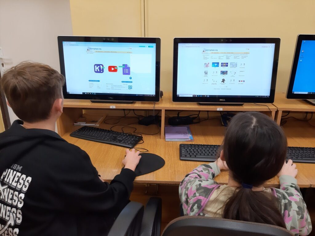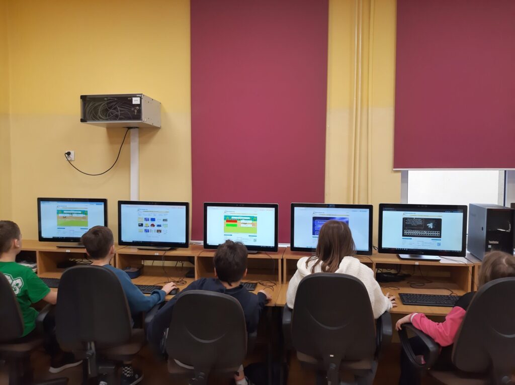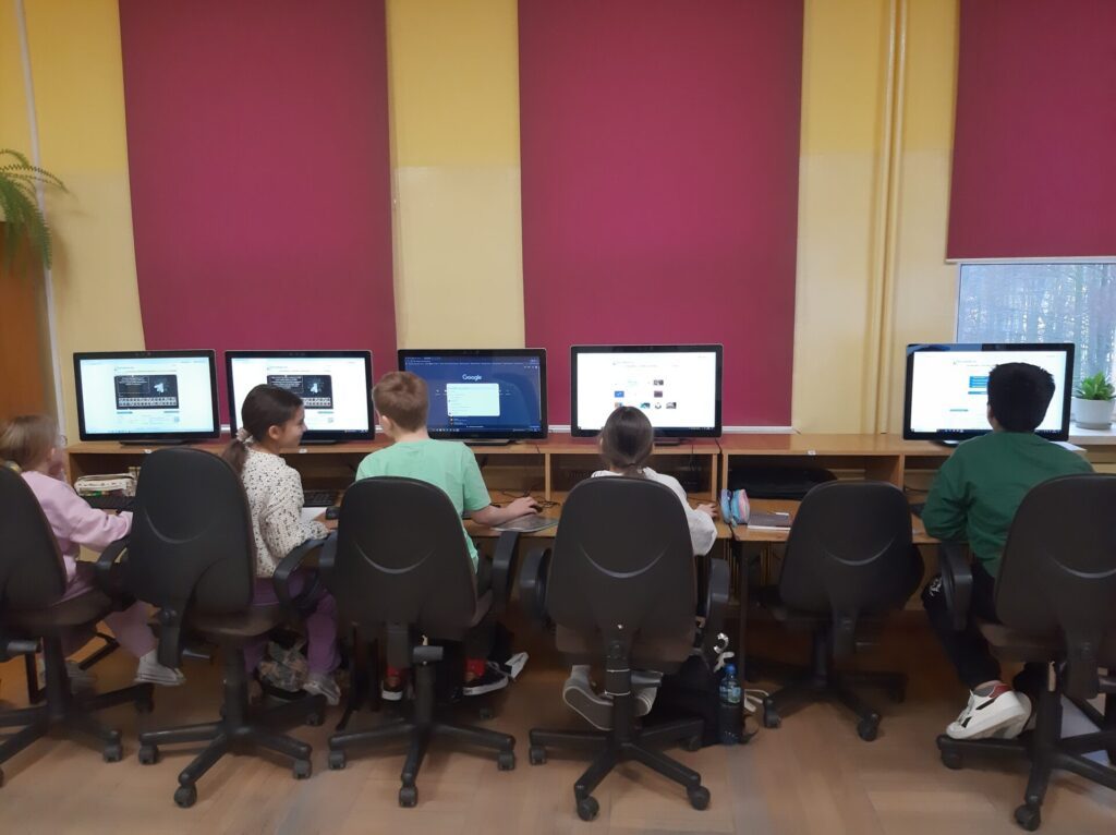 Uczniowie pracowali w grupach, wykonując plakaty tematyczne promujące bezpieczne zachowania w sieci. Dodatkowo rozwiązywali krzyżówki oraz quizy online, które w atrakcyjnej formie utrwalały zdobytą wiedzę. Zajęcia miały charakter aktywizujący i angażujący, sprzyjający współpracy oraz rozwijaniu kompetencji cyfrowych.