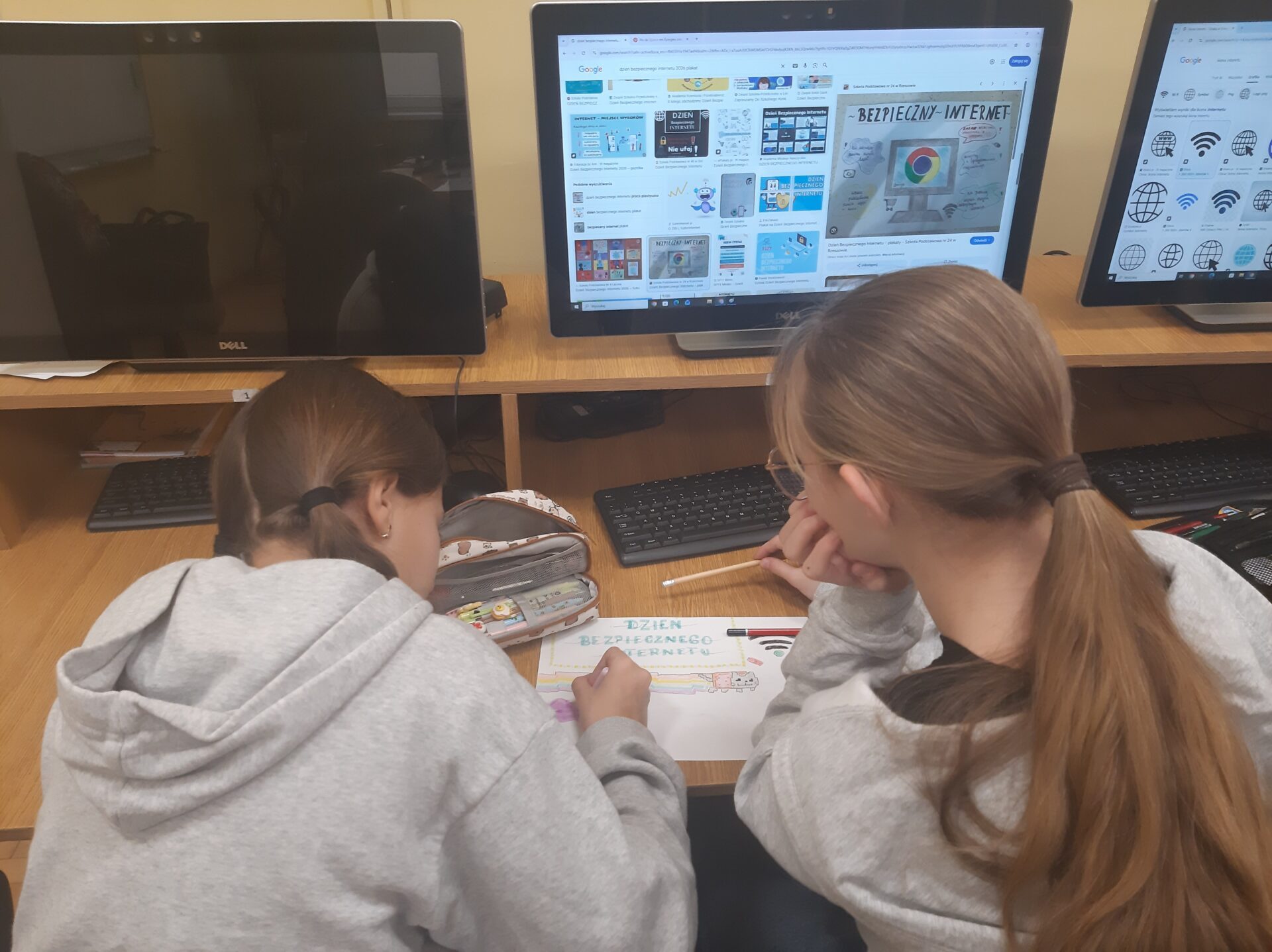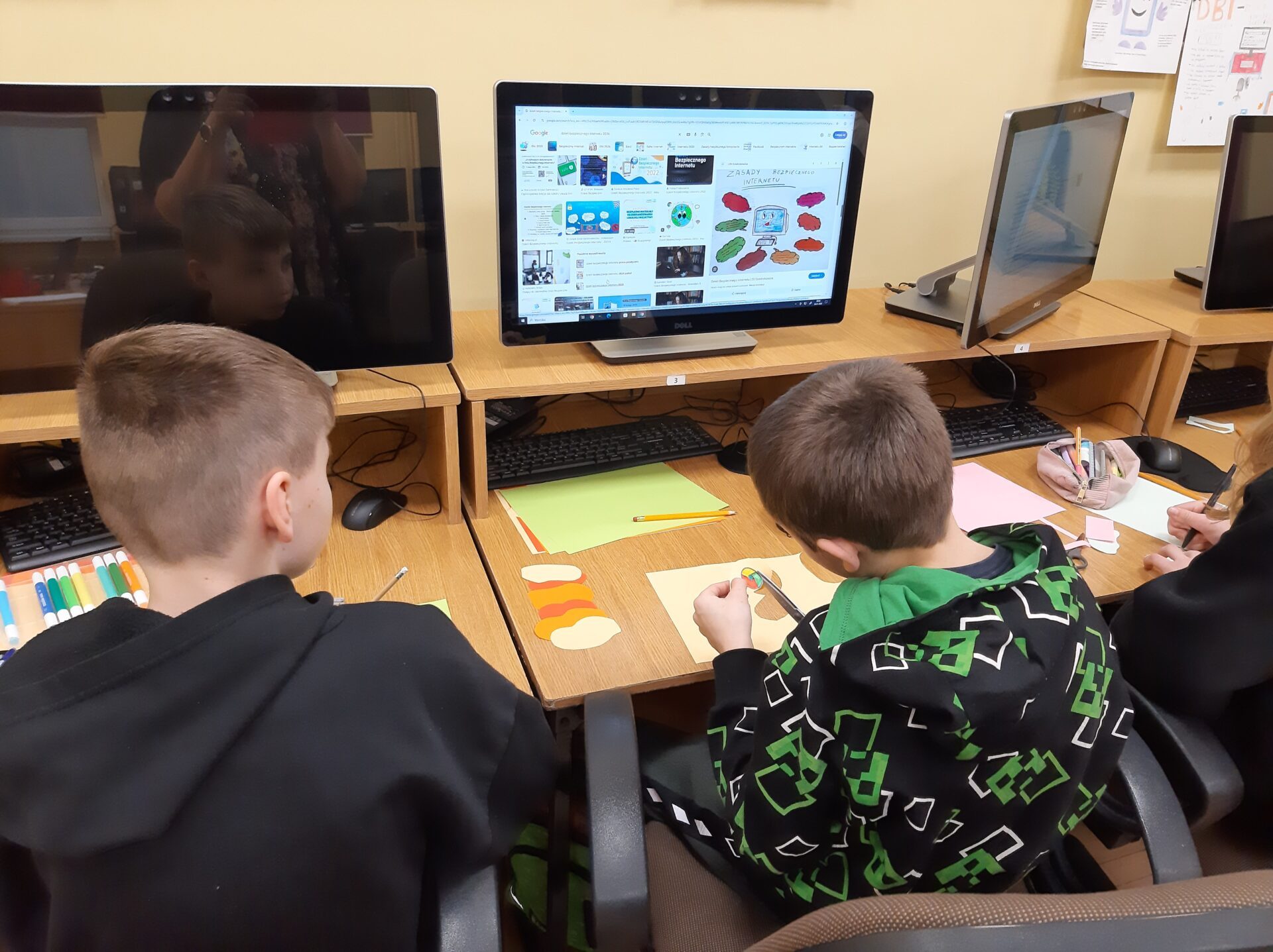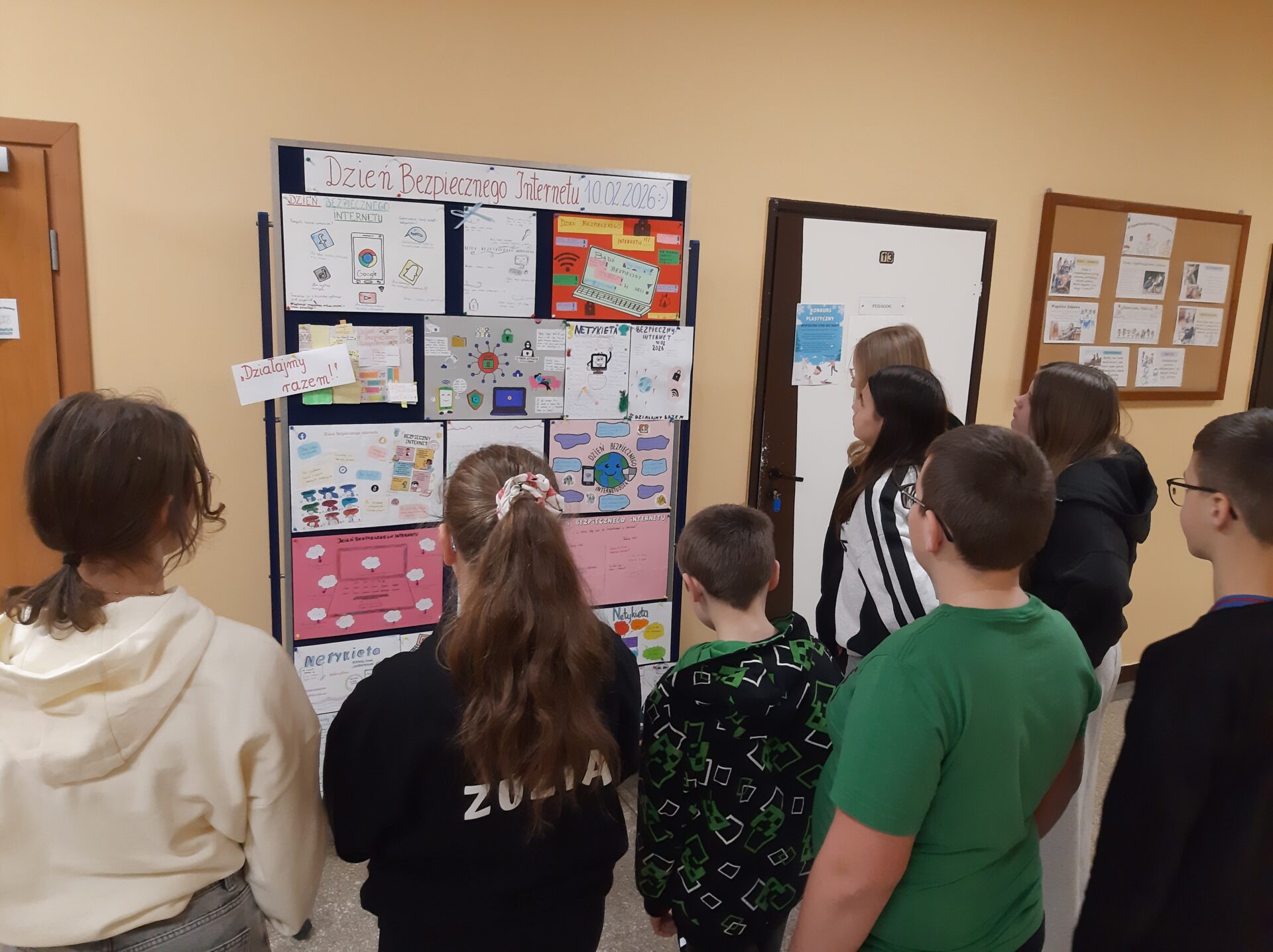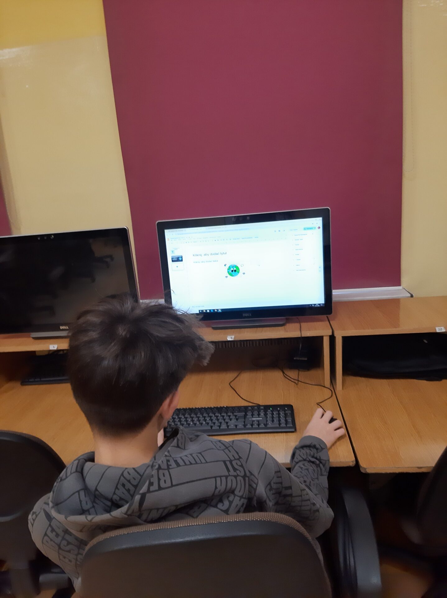 Uczniowie pracowali w grupach, wykonując plakaty tematyczne promujące bezpieczne zachowania w sieci. Dodatkowo rozwiązywali krzyżówki oraz quizy online, które w atrakcyjnej formie utrwalały zdobytą wiedzę. Zajęcia miały charakter aktywizujący i angażujący, sprzyjający współpracy oraz rozwijaniu kompetencji cyfrowych.