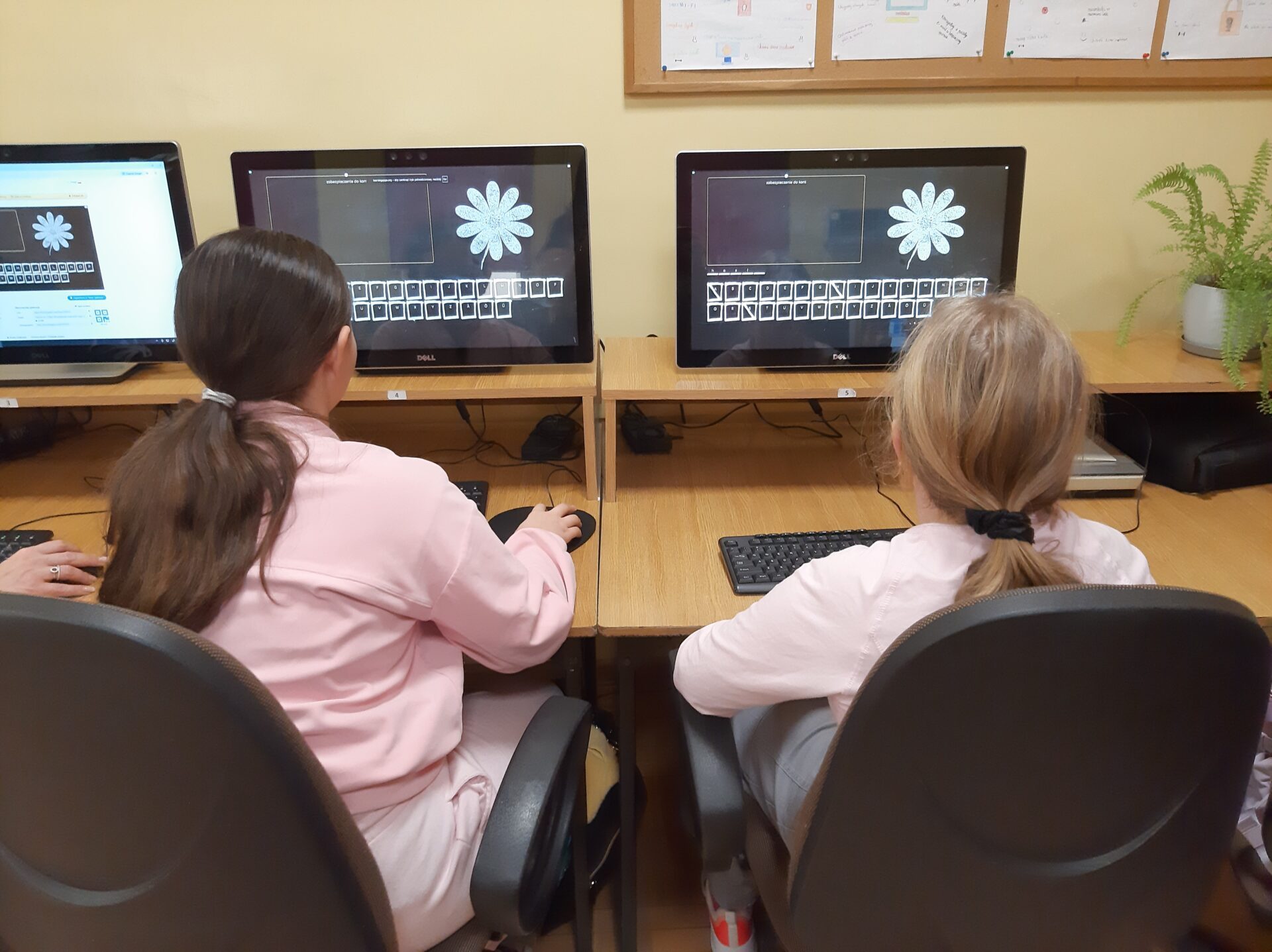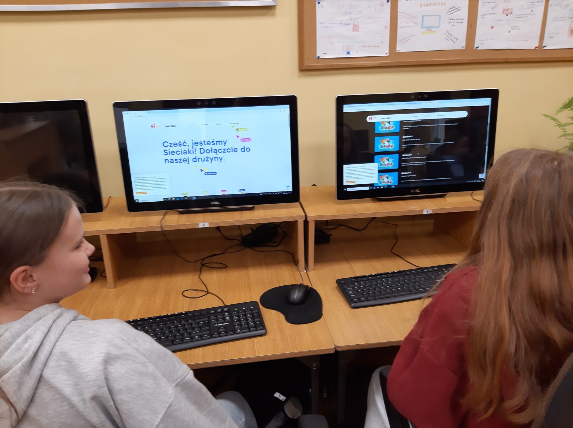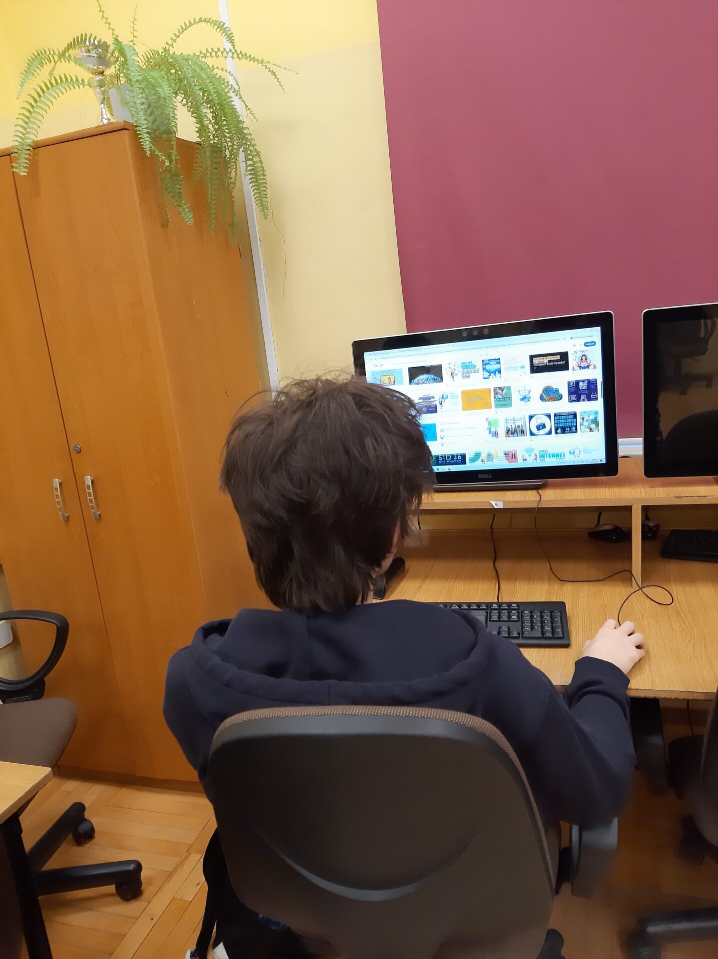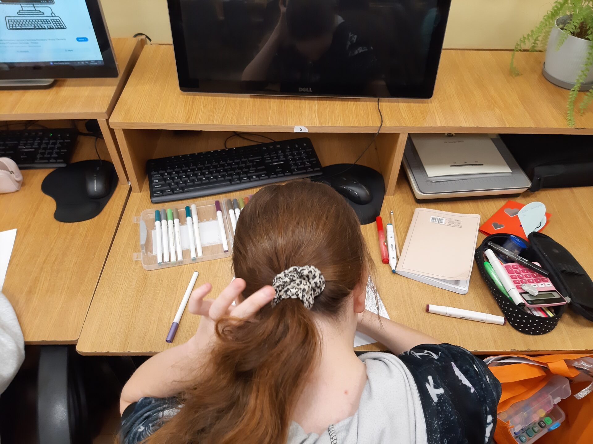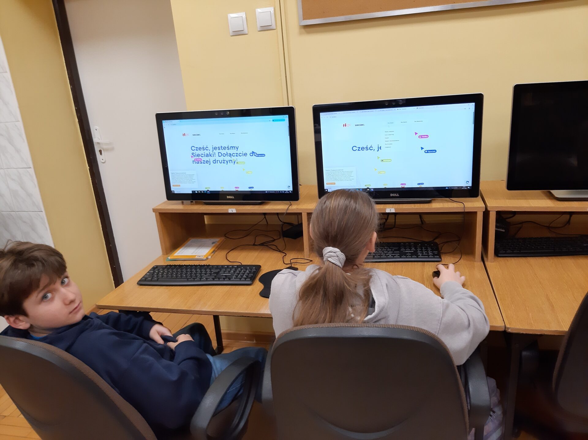 Uczniowie pracowali w grupach, wykonując plakaty tematyczne promujące bezpieczne zachowania w sieci. Dodatkowo rozwiązywali krzyżówki oraz quizy online, które w atrakcyjnej formie utrwalały zdobytą wiedzę. Zajęcia miały charakter aktywizujący i angażujący, sprzyjający współpracy oraz rozwijaniu kompetencji cyfrowych.
