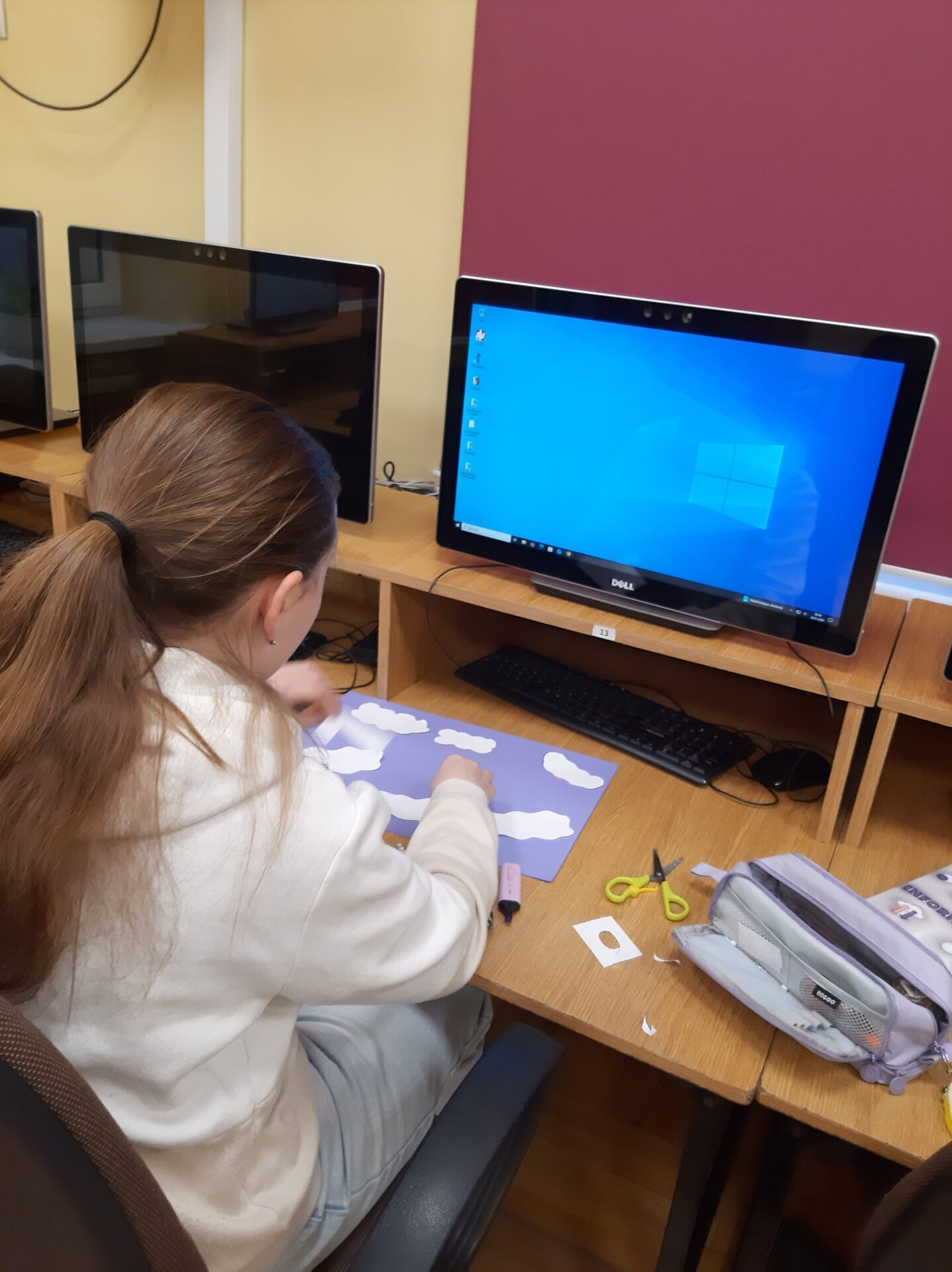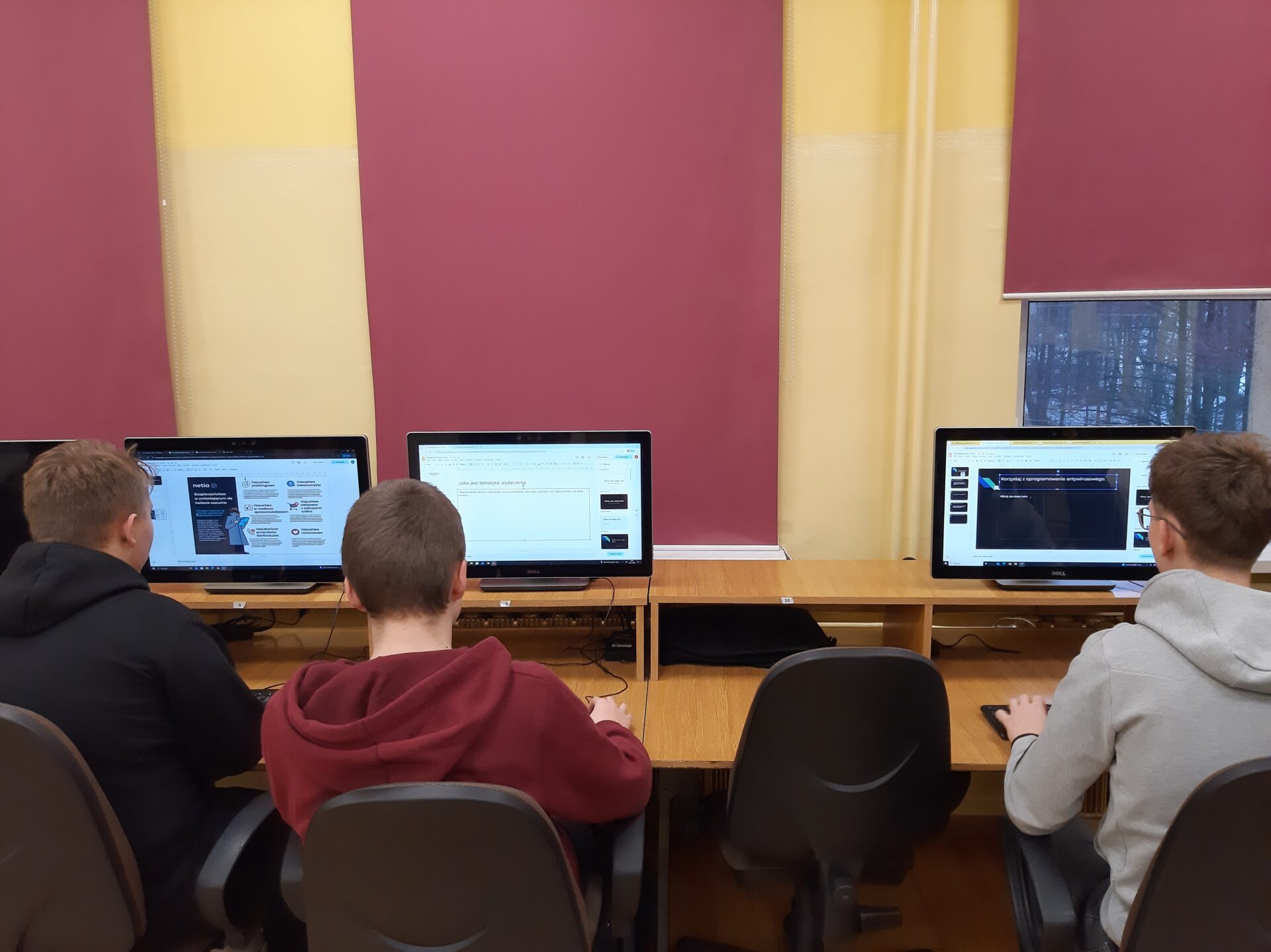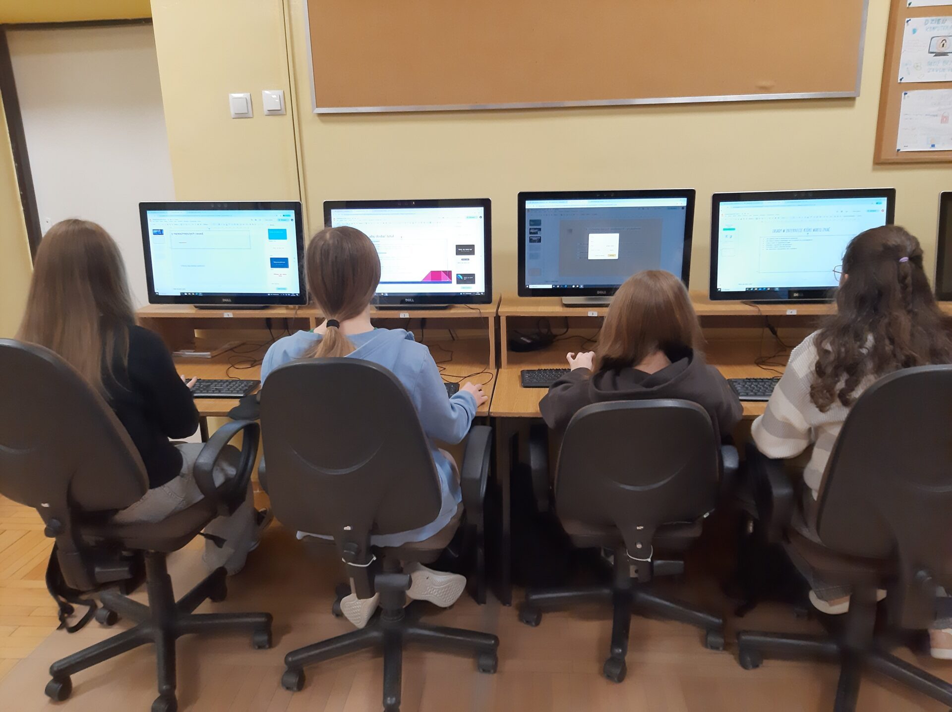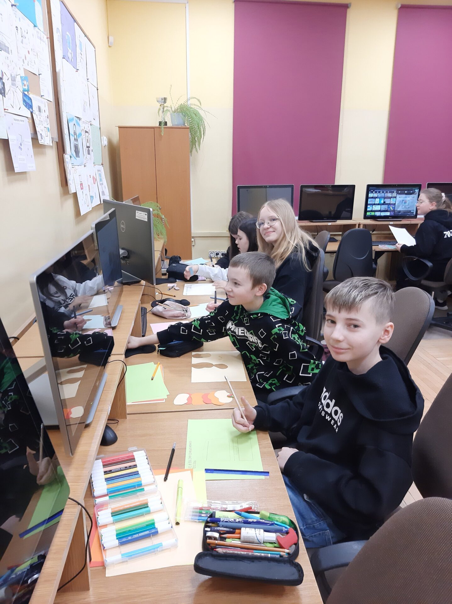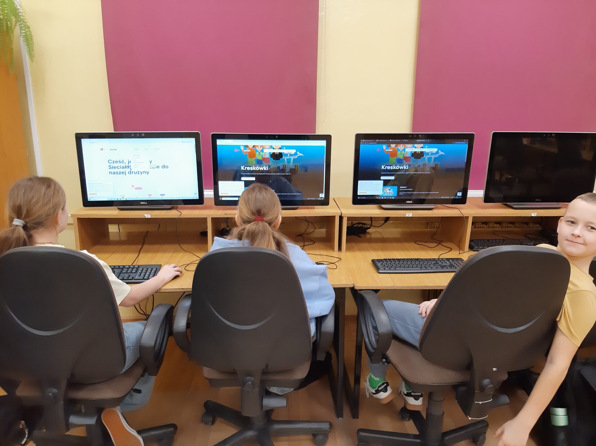 Uczniowie pracowali w grupach, wykonując plakaty tematyczne promujące bezpieczne zachowania w sieci. Dodatkowo rozwiązywali krzyżówki oraz quizy online, które w atrakcyjnej formie utrwalały zdobytą wiedzę. Zajęcia miały charakter aktywizujący i angażujący, sprzyjający współpracy oraz rozwijaniu kompetencji cyfrowych.