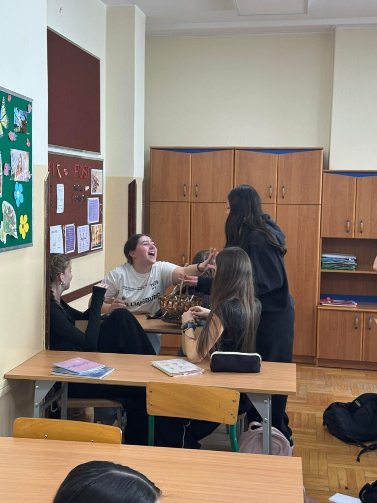 Z okazji Pierwszego Dnia Wiosny nasz Samorząd Uczniowski, chodząc po szkole, częstował wszystkich uczniów lizakami. Podczas lekcji znalazła się chwila na coś słodkiego, ta chwila przerwy wprawiła naszych uczniów w wiosenną i wesołą atmosferę.