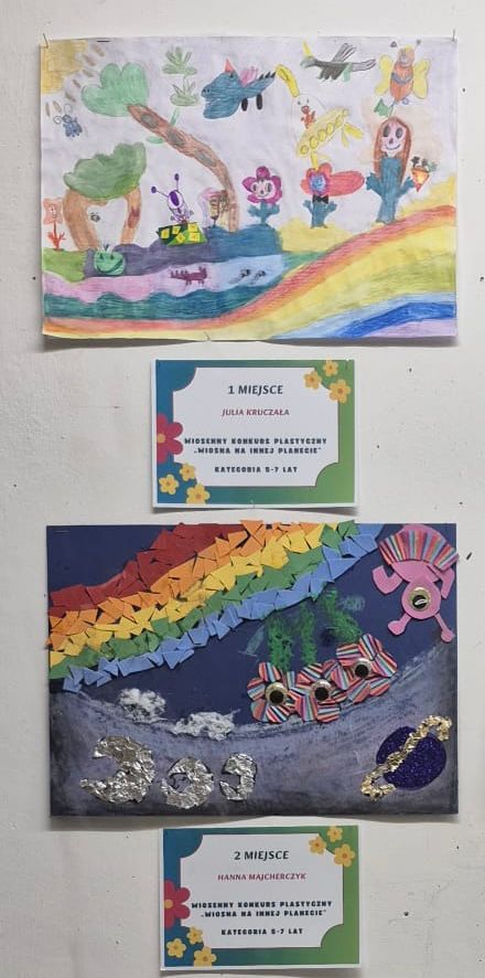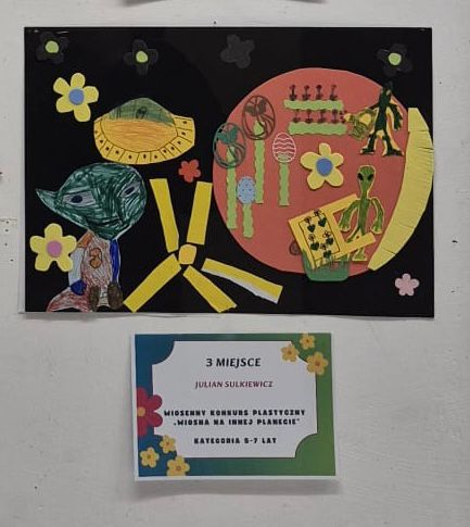 Uczniowie klasy 1a wzięli udział w konkursie plastycznym „Wiosna na innej planecie”, organizowanym przez Dom Kultury w Kętach.